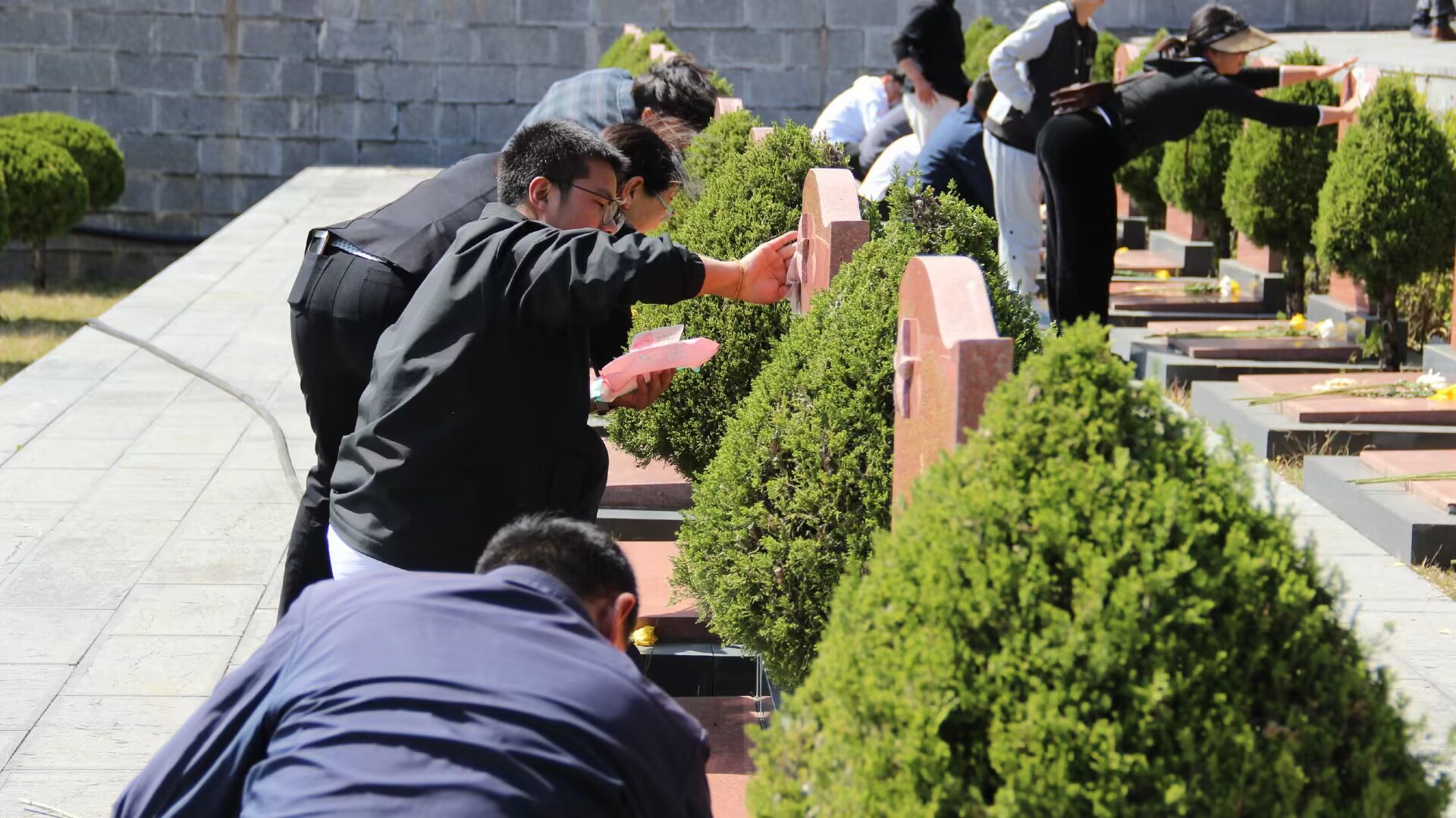 15:00,全体人员在人民英雄纪念碑前肃立,唱奏国歌、默哀。张鑫同志带领全体党员重温入党誓词,数学与信息技术学院团总支副书记殷惠心同学带领全体入党积极分子重温入团誓词。各共建单位党组织负责人代表全体参加活动人员向人民英雄纪念碑敬献花篮。最后,全体人员缓步前往烈士墓前献花,清扫墓碑,用实际行动向革命烈士表达最深切的悼念和哀思。站在烈士墓前,一股凛然正气扑面而来。同志们仿佛看到了那炮火连天的峥嵘岁月,看到了革命先烈穿梭在枪林弹雨中前仆后继、视死如归的身影。革命烈士们在民族危亡的时刻不惜抛头颅、洒热血,用满腔的热血谱写了一曲雄壮的赞歌,用宝贵的生命诠释了“天下兴亡,匹夫有责”的担当精神。