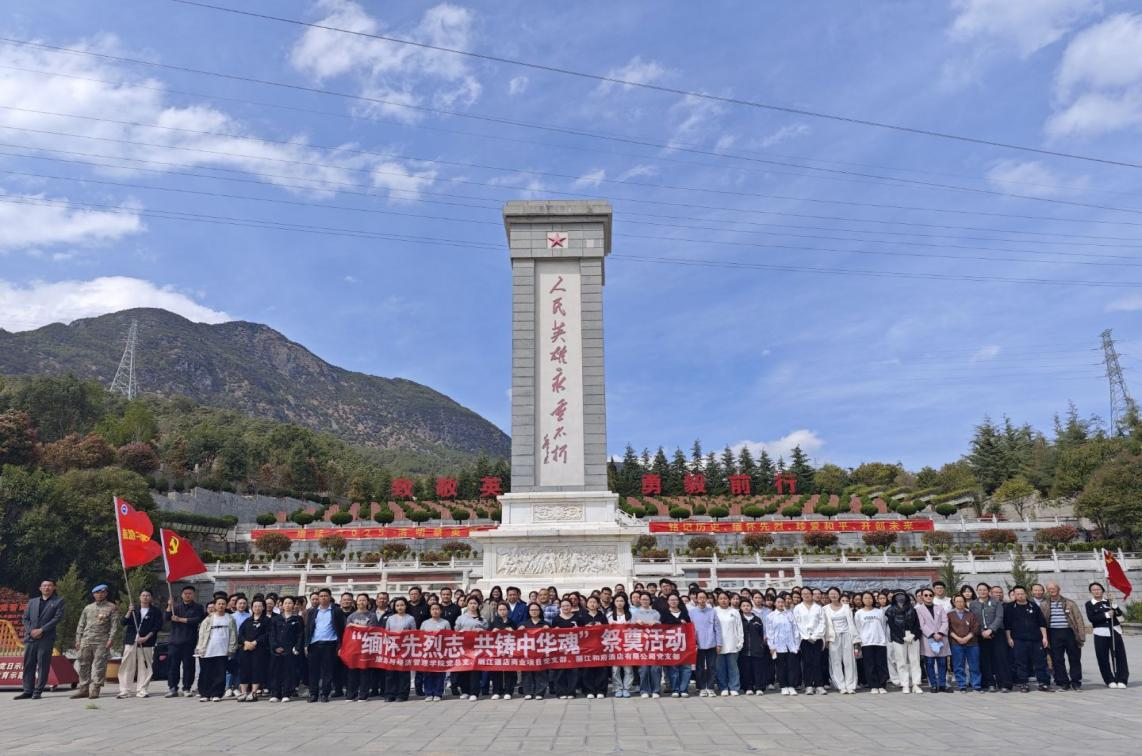 为弘扬爱国主义精神,深化党史学习教育,引导青年学子铭记革命历史、传承红色基因,4月11日下午,旅游与经济管理学院党总支、丽江酒店商业项目党支部、丽江和府酒店有限公司党支部共同开展“缅怀先烈志,共铸中华魂”清明祭扫主题党日活动。共建单位党员代表、学生党员代表、团学干部等近200人参加了本次活动。