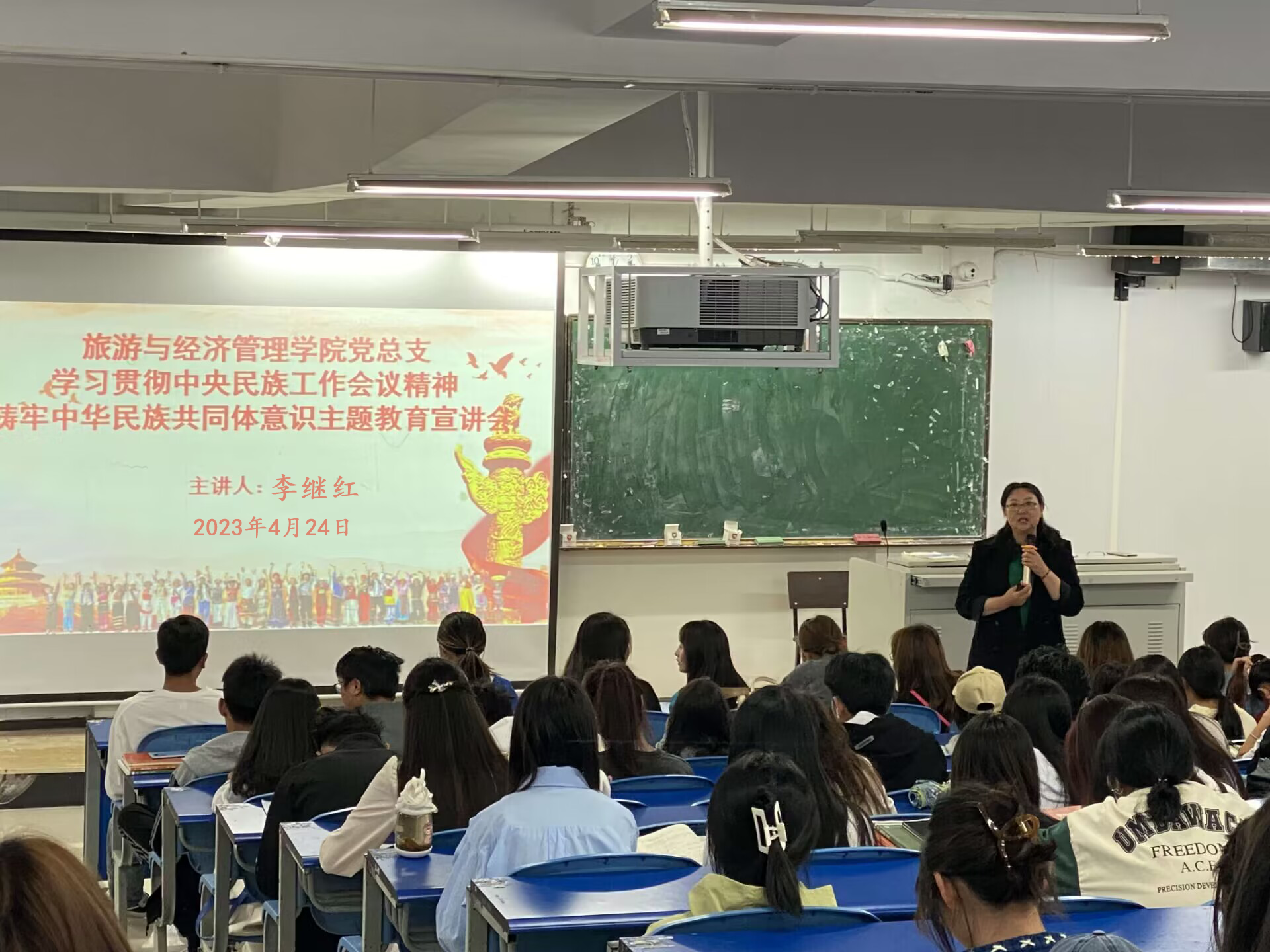 为深入贯彻落实中央民族工作会议精神,推动新时代党的民族工作高质量发展,学院党总支于2023年4月24日中午在博学楼229召开了“学习贯彻中央民族工作会议精神 铸牢中华民族共同体意识”主题教育宣讲会。本次宣讲会由学院党总支副书记李继红主讲,在校19个班级的全体班委共200余人参加了会议。