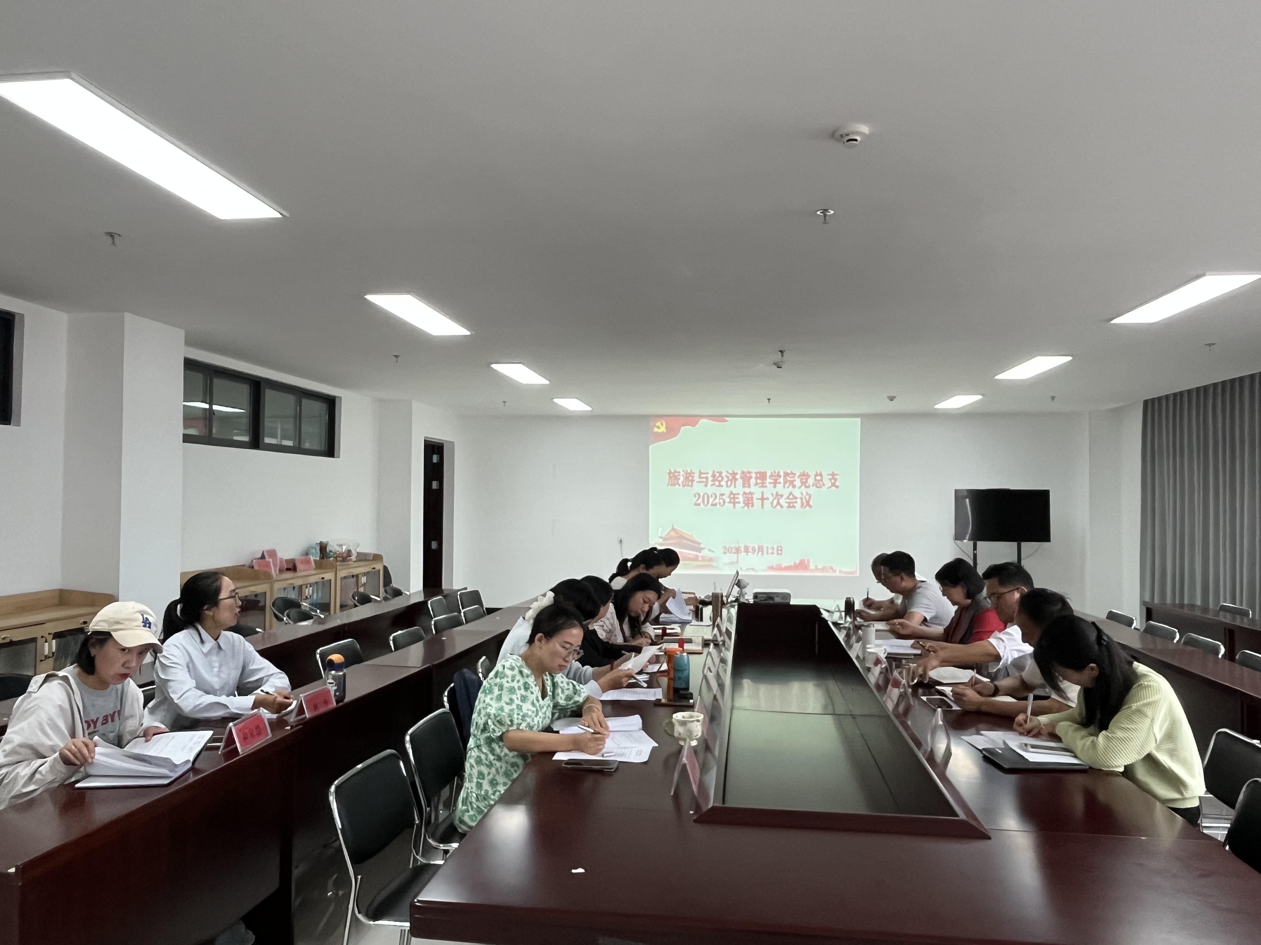 为深入学习学校党委近期重要会议精神和贯彻落实安排部署的新学年相关工作,系统总结2025年上半年工作成效,科学谋划下半年发展方向,9月12日下午,旅游与经济管理学院党总支2025年第10次扩大会议在弘德楼407会议室召开。会议由党总支副书记李继红同志主持,党总支全体支委、各党支部书记、非党干部、三办主任、团总支、工会、妇联负责同志、全体辅导员参加了会议,通过“集中学习+总结部署”的形式,为学院新学年高质量发展锚定方向、凝聚合力。