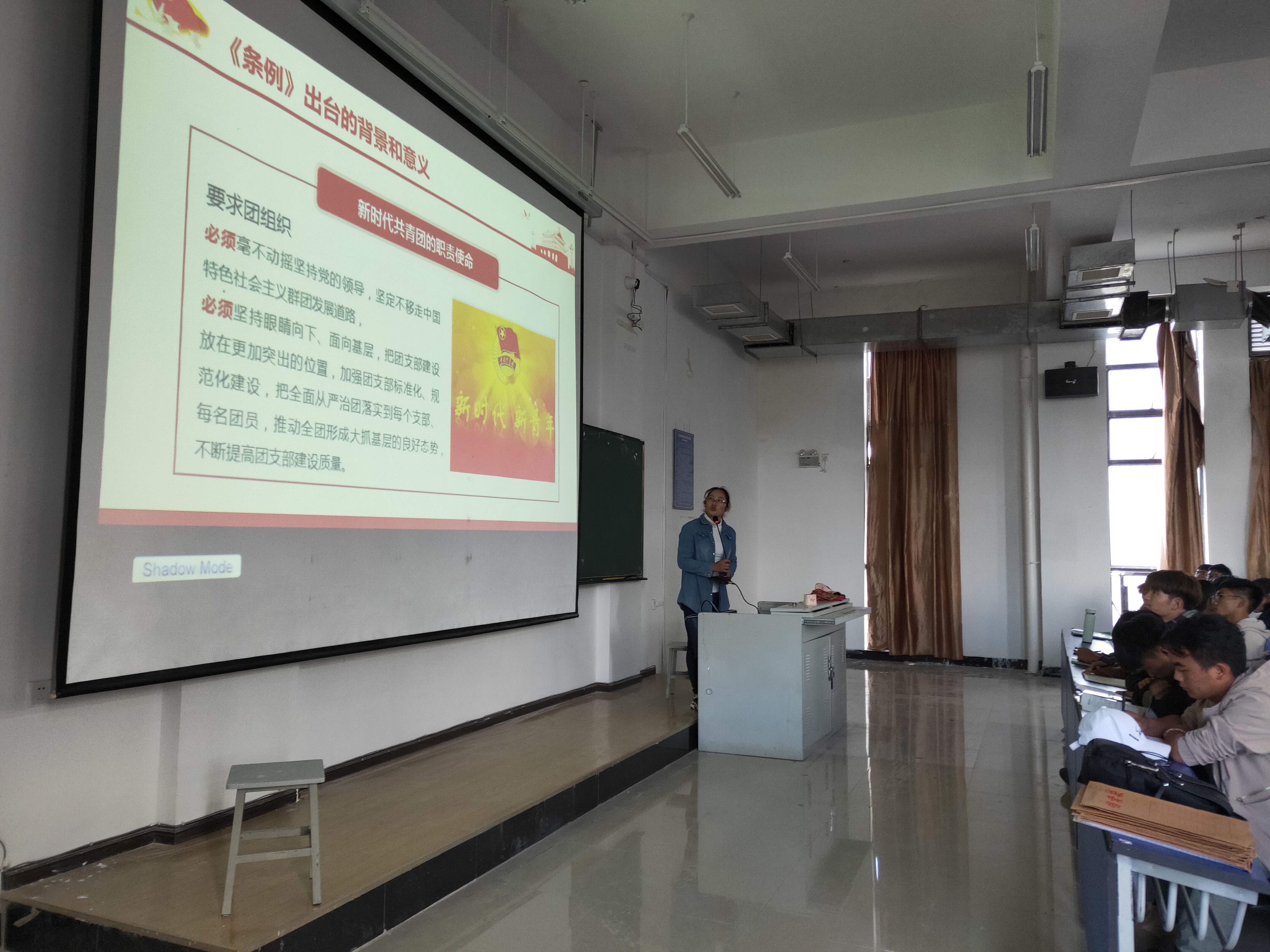 活动中,白老师还为青年团员解读了《条例》的内容,对团支部的工作原则、团支部委员会的培训、团支部的整理整顿等相关内容对各班团支部提出了建议和要求,要求各班必须按要求开展活动,杜绝形式主义。对于丽江市创建文明城市、文明校园,我们应该做什么、怎样做、如何做,白老师提出团干部要积极领导,开展主题团日活动,团员积极参与,熟记社会主义核心价值观,为创建文明城市而贡献力量。
