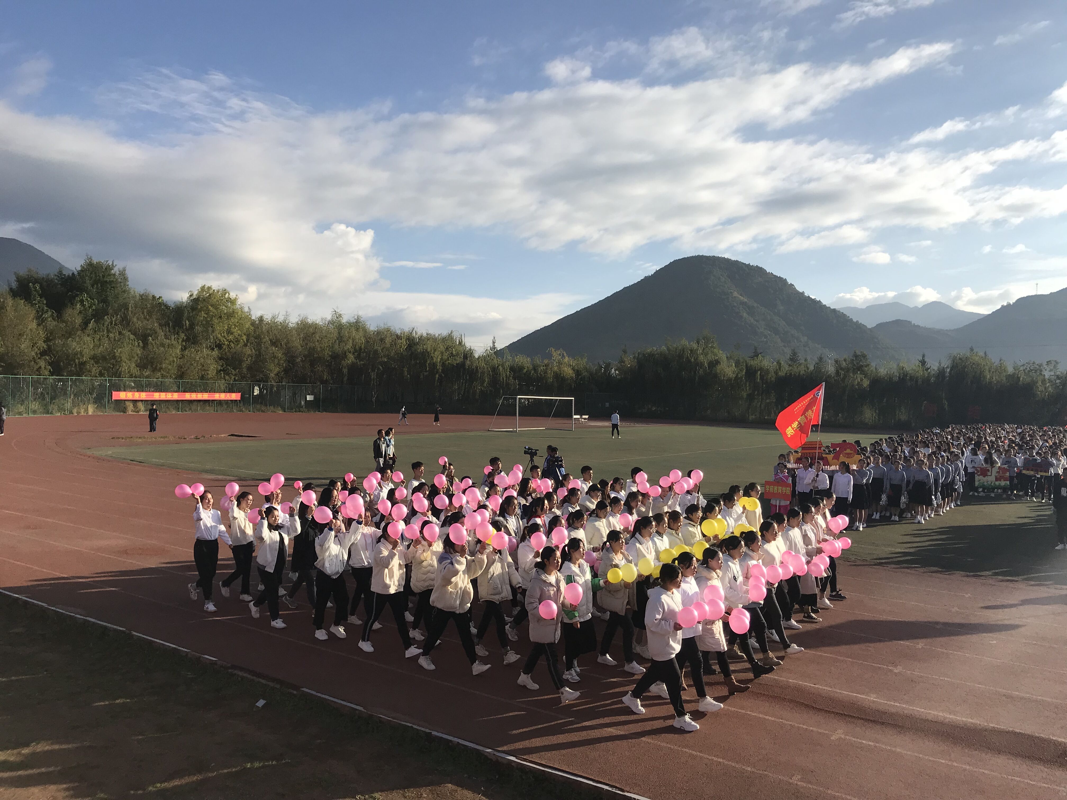 为全面促进我校大学生的身心健康,培养学生的团队合作的精神,给予学生一个参加运动竞技的平台,证明自己的实力,同时推动体育文化建设的发展,弘扬体育文化精神,丽江师范高等专科学校于2019年10月31日至11月1日在学校田径场举办了第十三届田径运动会,参加本次活动的有全校在校师生。