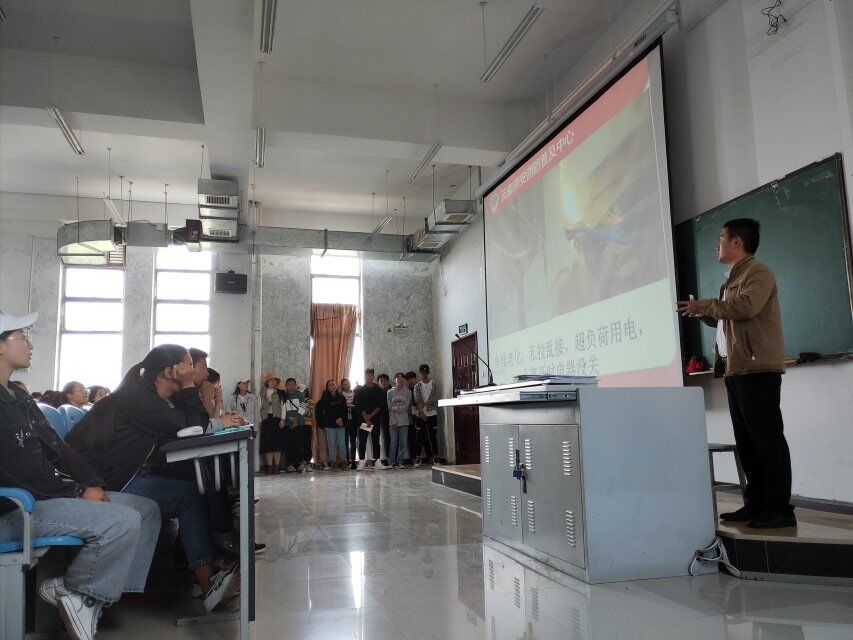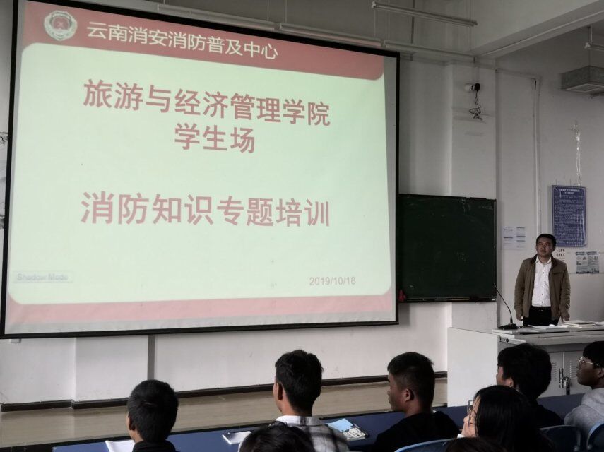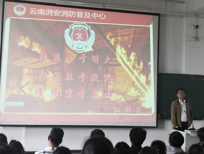 为提高广大师生的消防安全意识,推进我校消防安全四个能力建设,进一步做好学院消防安全工作,旅游与经济管理学院于2019年10月18日在教学楼324开展了消防安全普及教育宣讲,本次活动的主讲人是来自云南消防安全普及中心的冯教员。