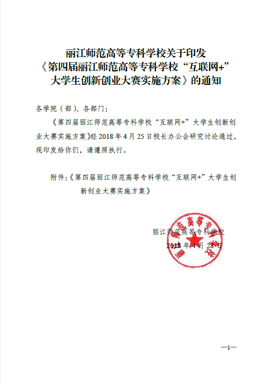 丽江师范高等专科学校关于印发《第四届丽江师范高等专科学校“互联网+”大学生创新创业大赛实施方案》的通知