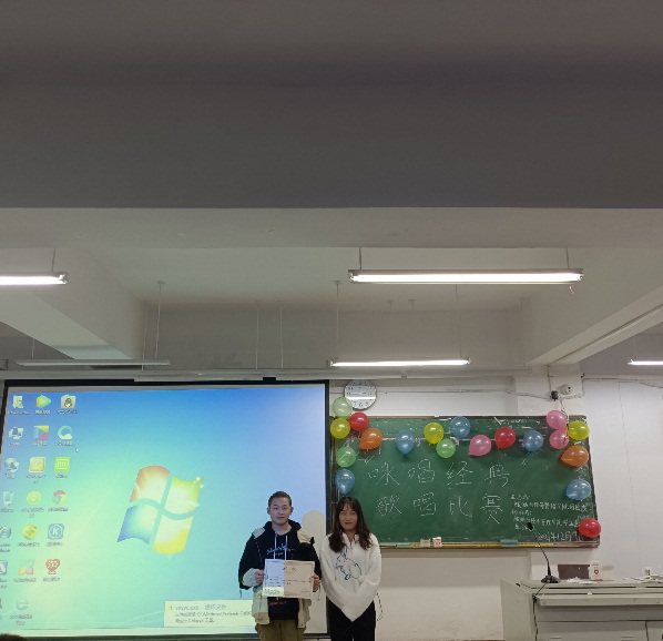 歌唱青春,绽放荣光,一弦一桩,犹如一音一节,瑟的音节繁复,音韵悲美,令听者难以忘怀。本次活动由一号选手童吉梅带来的歌曲《锦瑟》开始,剩余10位选手依次进行,每位参赛选手都充分准备,同学们也都积极参与本次活动,营造了一个良好的活动氛围 。最后由十号选手赵启江同学带来的《知否知否》结束了本次活动,他的歌曲表达了关于未来我们的责任在肩,为了点燃一个斑斓的梦,让我们共同拨亮新年的烛光。最终赵启江同学以9.075分的成绩获得本次活动的一等奖,周晓艳同学和熊文江同学分别以8.88分和8.925分的成绩获得二等奖,童吉梅同学、吴华发同学和宋相玲同学分别以8.78分、8.675分和8.675分的成绩获得三等奖。
