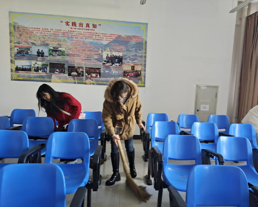 担任此次活动的负责人是2021级大数据与会计三班的方欣。活动开始前,把同学们分为两组。负责清扫实训楼二楼、三楼和四楼12个教室的团队队长是由旅游与经济管理学院团总支学生会青年志愿者协会负责人陆晓平和旅游与经济管理学院团总支学生会学习部部长杨树远两位同学担任,而打扫北实验楼四楼6个教室的团队队长则是由旅游与经济管理学院团总支学生会体育部部长肖燕和旅游与经济管理学院团总支学生会办公室部长马详申两位同学担任。在打扫的途中大家都积极配合,互帮互助团结友爱,积极认真的打扫卫生,各个角落也都打扫的干干净净。清扫活动完成后,同学们全部集中于实训楼前,然后由旅游与经济管理学院团总支副书记代有伸进行了现场到梦空间签到,签到方式是密码签。最后活动负责人进行了总结:本次活动很感谢各位同学的积极参与,本次活动没有出现玩手机的现象,这是很好的一点,希望以后我们学院的活动越来越好。