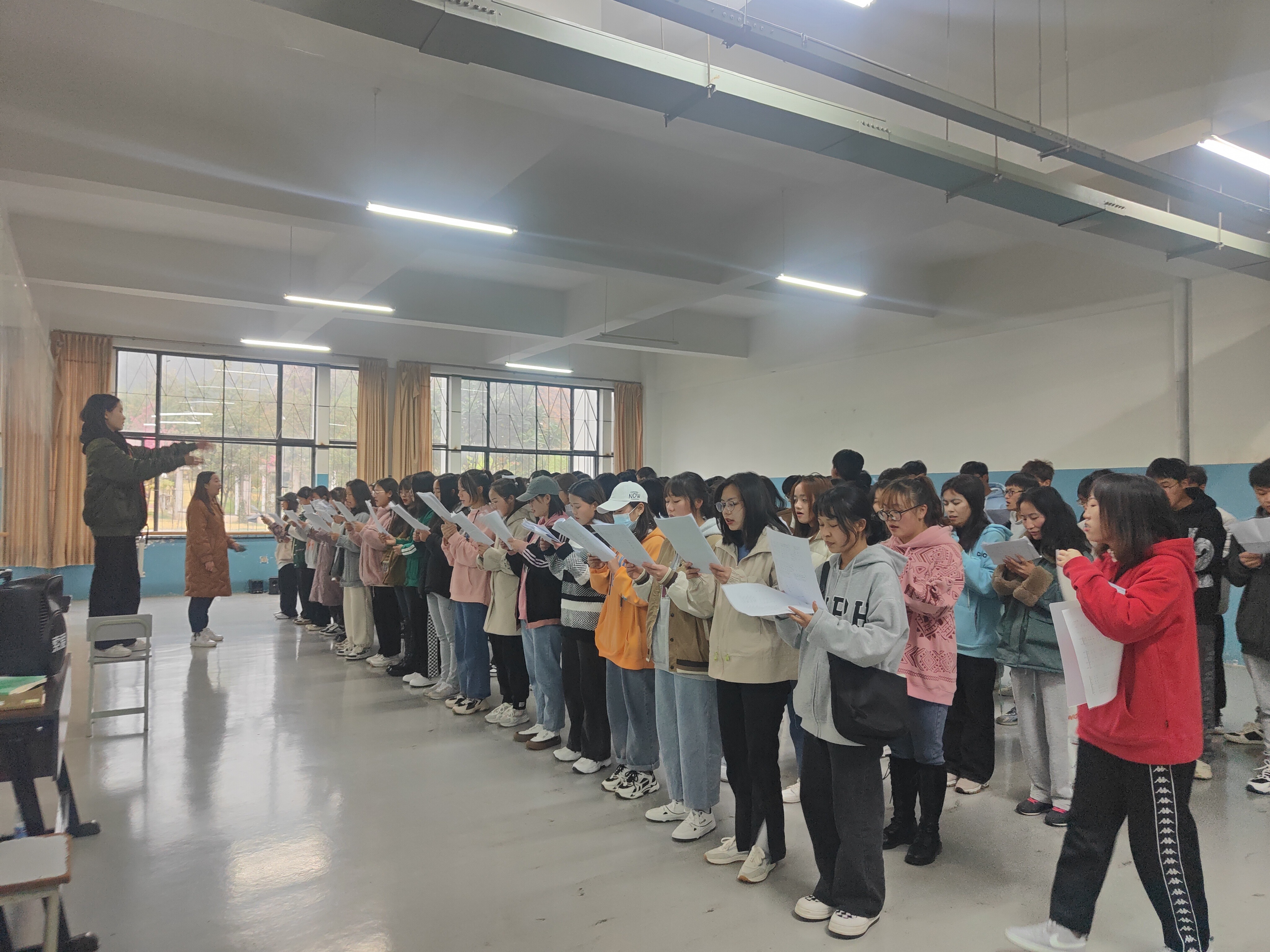 此次合唱至关重要,学院领导和老师及同学都高度重视。学院的领导和老师曾多次来艺术楼给同学们加油打气,艺术学院的指导老师认真负责,同学们积极参与排练,同时学院学生会的干事每天都有三位到场负责点名签到积极配合老师完成每一次的排练。