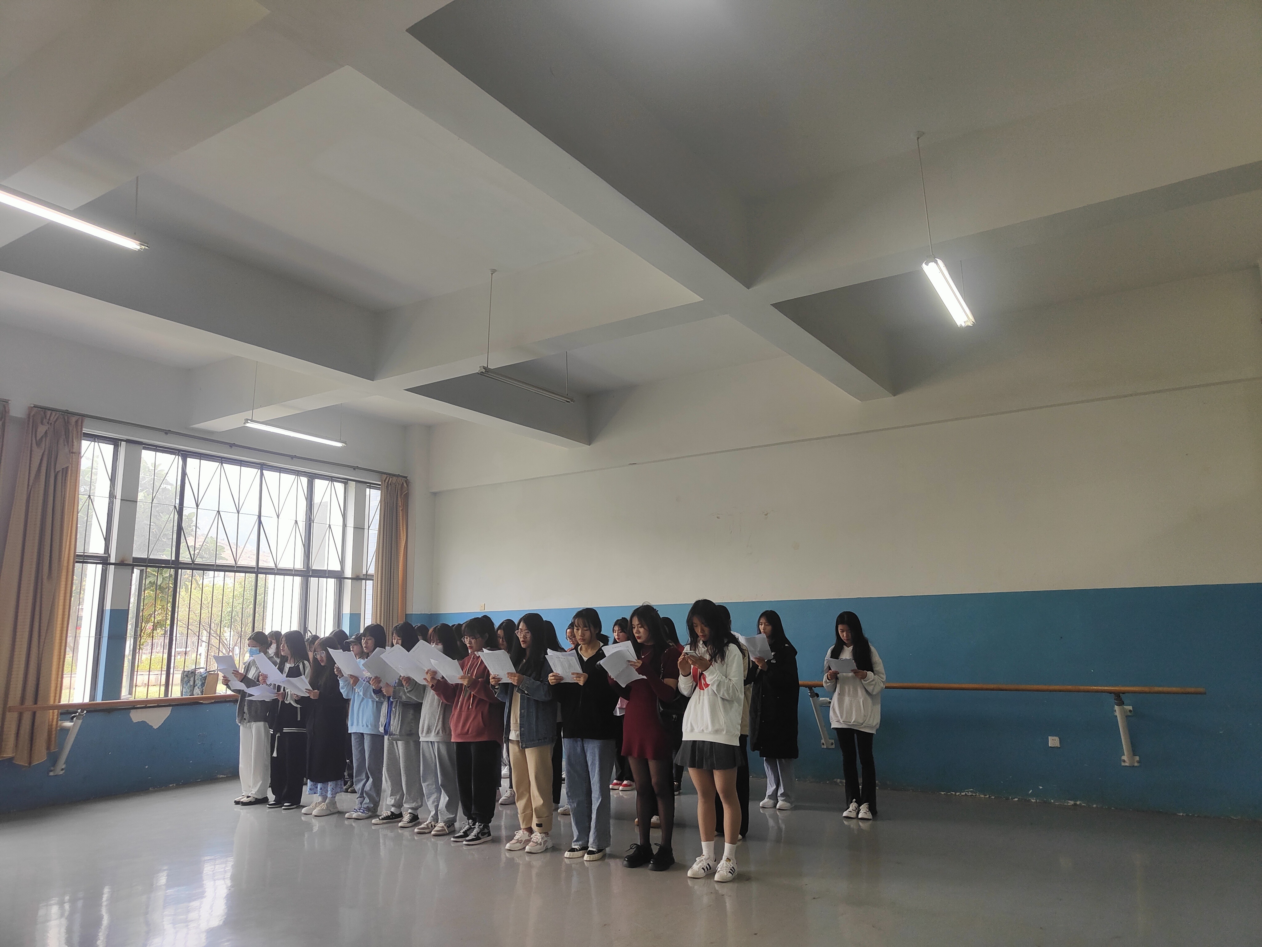 每当我们经过艺术楼,我们就会听见一阵阵歌声,这是我院2019级五年制、2020级和2021级三个组成的97位同学在为2022年4月22日至4月28日即将举行的“张桂梅—榜样的力量”校园系列活动做准备。此次准备的合唱排练节目,主要是四个声部组成,分别是男高人数13,女高人数32,男低人数27,女低人数25。
