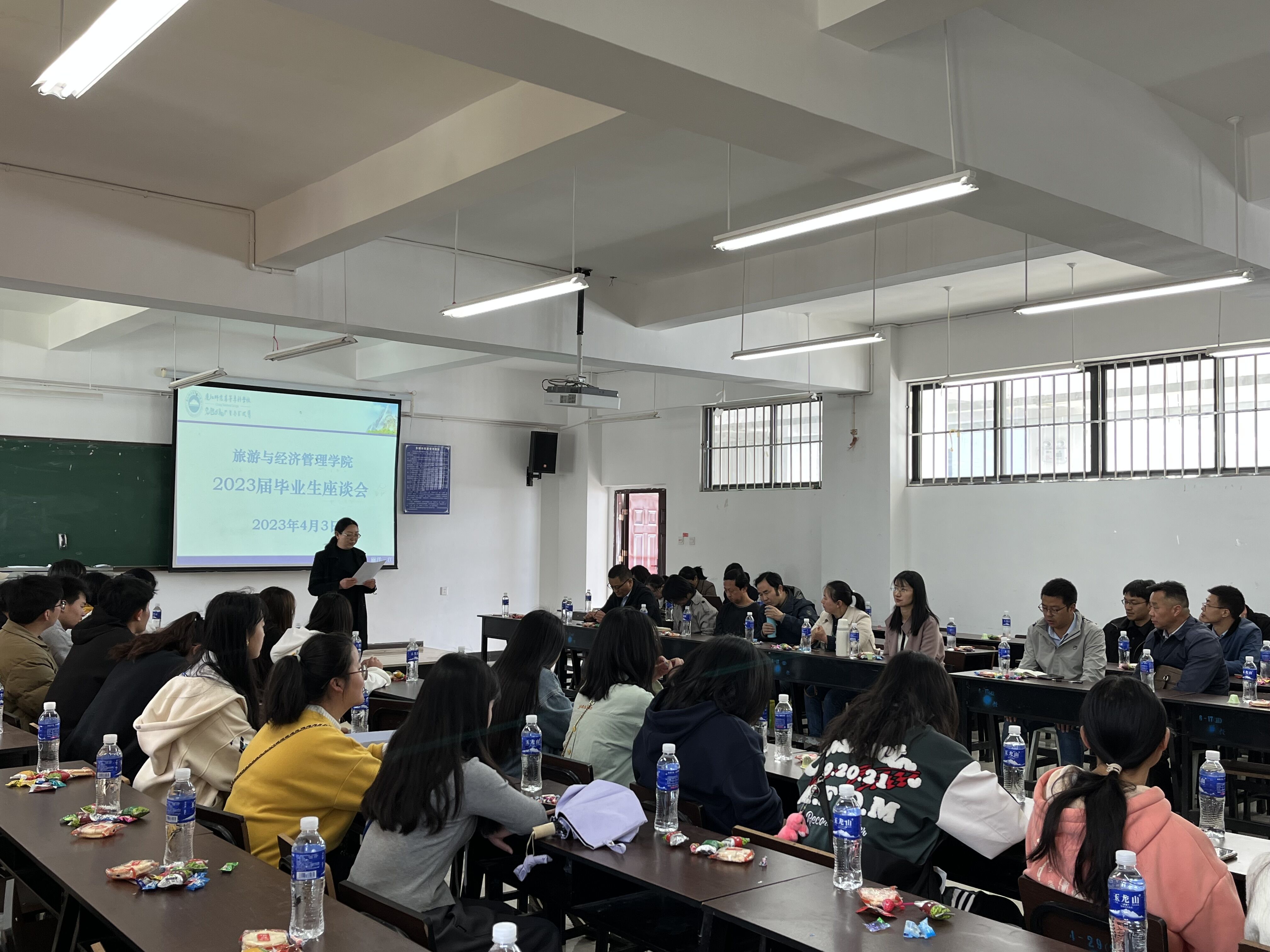 大学是同学们人生旅程的一个重要驿站,经过学校近三年的精心培养,同学们逐渐蜕变并走向成熟。不久,2023届毕业生即将奔赴新的学习、生活和工作岗位,开启一段全新的旅程。为了让毕业生再次感受旅游与经济管理学院大家庭的温暖,充分表达全院教师和学弟学妹们对他们的依依不舍和良好祝愿,重温同学们在丽师学习期间的美好,学院于2023年4月3日在博学楼617教室组织召开了2023届毕业生座谈会。学院党总支副书记、院长和燕杰、副院长周富军、杨静海出席会议,会议由学院党总支副书记李继红主持。