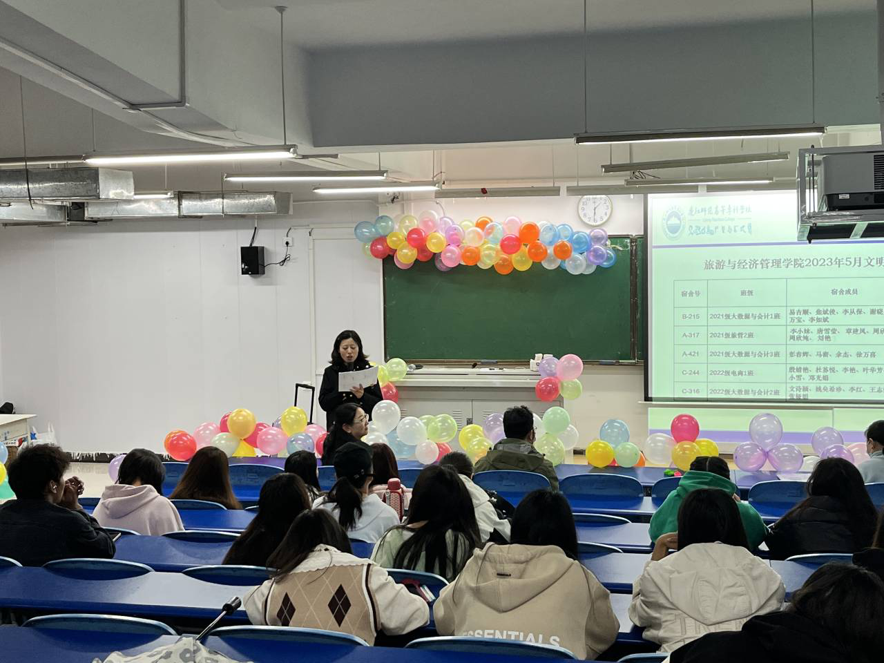 2023年5月文明宿舍名单:2021级大数据与会计1班B-215,2021级大数据与会计3班A-421,2021级旅游管理2班A-317,2022级电子商务1班C-244,2022级大数据与会计2班C-316。