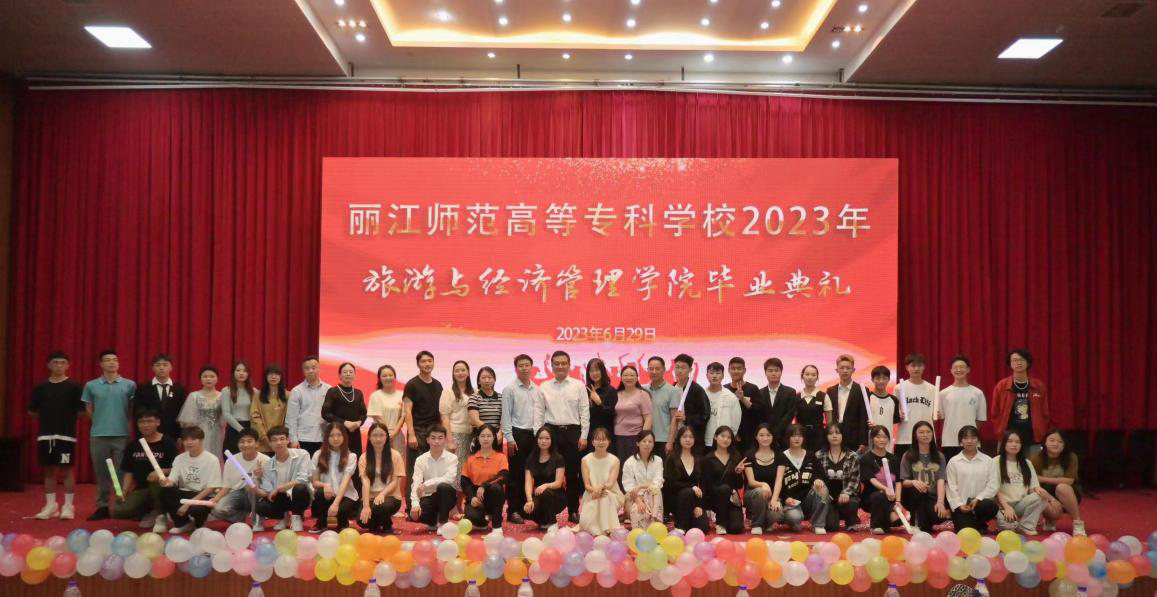 2023年6月29日晚,旅游与经济管理学院在图书馆报告厅举办了2023届毕业生毕业典礼。特邀嘉宾学生处许世媛老师、学院党总支副书记、院长和燕杰、副院长周富军和杨海静、党总支纪检委员、专职组织员李文炳、党总支统战委员唐俊波、学工办主任牛永寿、团总支书记伍艳、综合办公室主任张云欣、教务办主任和雪刚、教师代表白海霞、毕业班辅导员和班主任出席会议。2023届毕业生代表、2021级和2022级各班级代表参加了毕业典礼。本次毕业典礼由党总支副书记李继红主持。