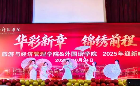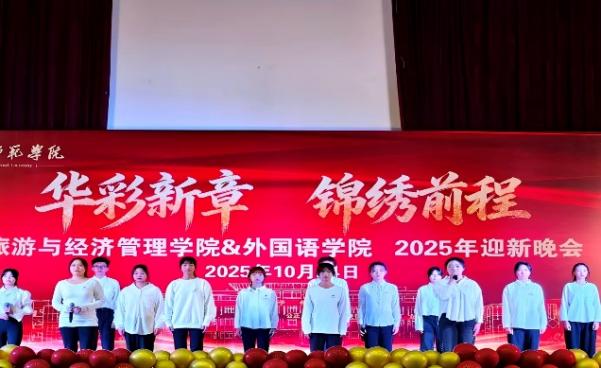 万物积势迎秋风,策马扬鞭续辉煌。在这金秋送爽、硕果累累的季节里,为热烈欢迎2025级新生的到来和加入,10月24日晚,旅游与经济管理学院和外国语学院携手合作,在学校体育馆共同举办了“华彩新章,锦绣前程”2025级新生迎新晚会。两个学院的领导、专任教师、班主任和辅导员出席晚会现场,与同学们一同观看了晚会。