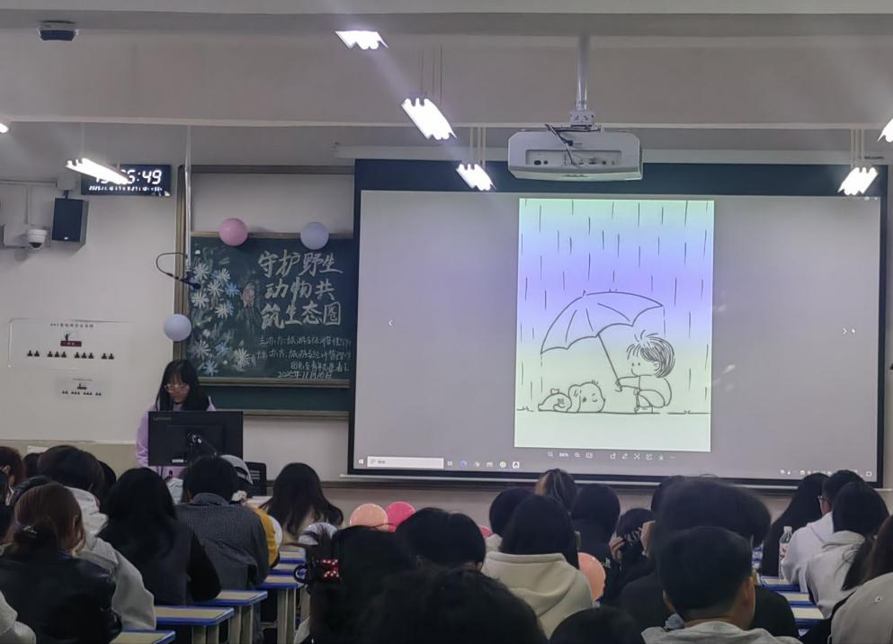 为积极响应国家关于加强生态文明建设的号召,提升青年大学生的生态环境保护意识,特别是对野生动物保护的关注与责任感,2025年11月16日,学院团总支在创新楼403举办了以“守护野生动物,共筑生态圈”为主题的绘画分享活动,共120人参加此次活动。此次活动将艺术创作与生态教育相结合,为同学们提供了一个抒发环保情怀、展现艺术才华、交流守护心声的平台。