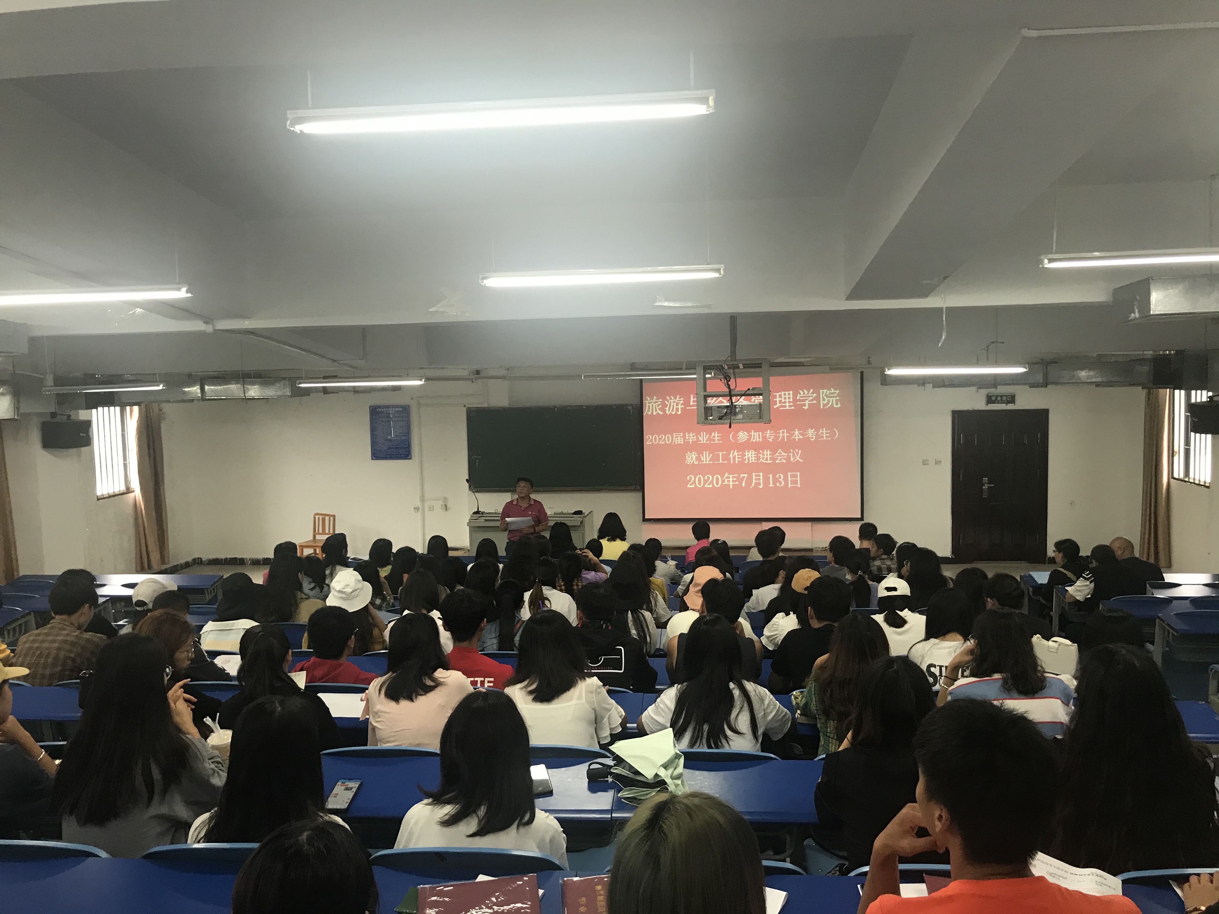 2020年7月13日上午9:00,旅游与经济管理学院在教学楼222教室召开2020届毕业生(参加专升本考生)就业工作推进会议,学院2020届参加专升本考试考生200余人、毕业生班主任、辅导员、学院领导班子参加会议,会议由学院党总支书记沈紫拉同志主持。