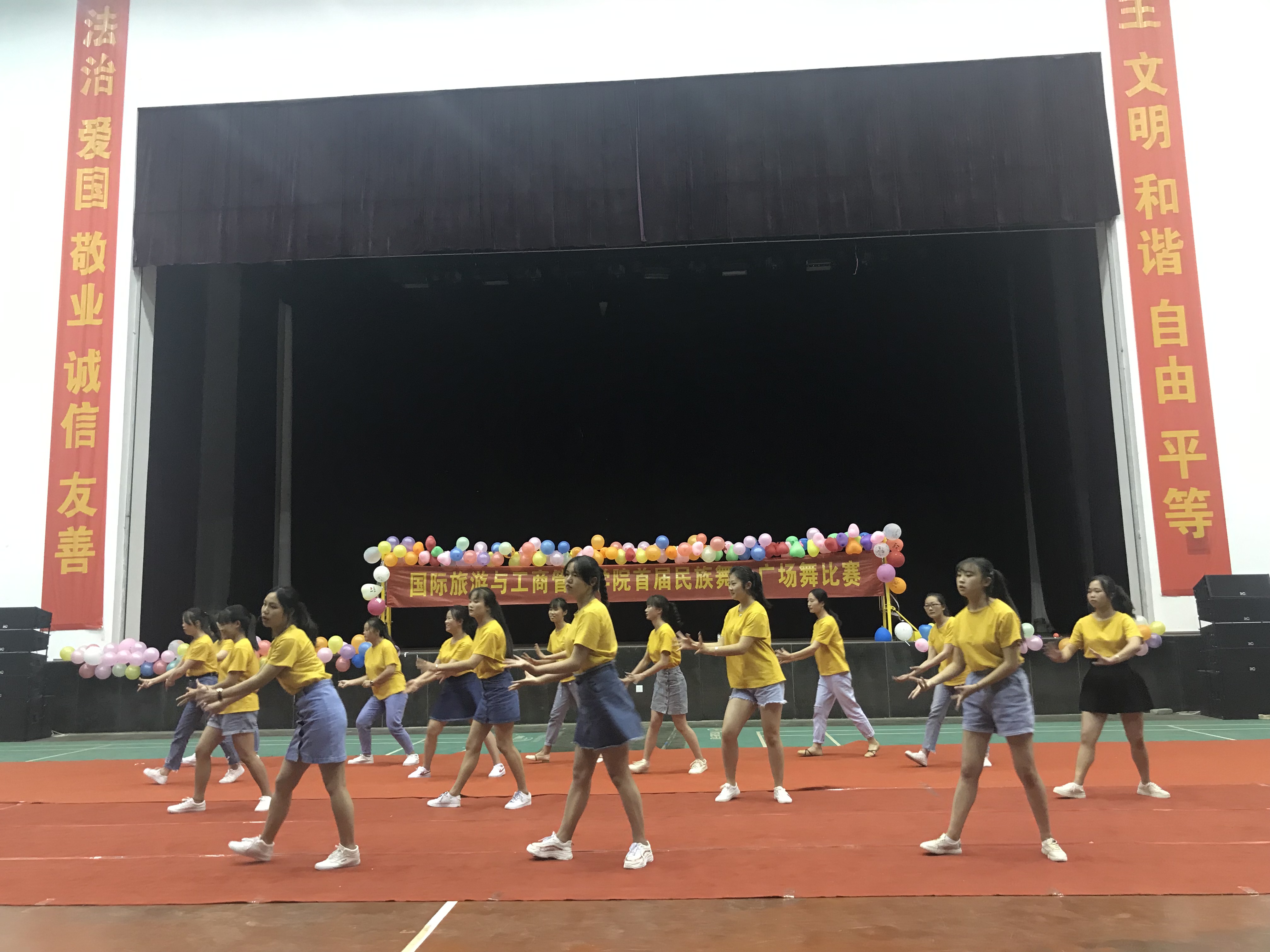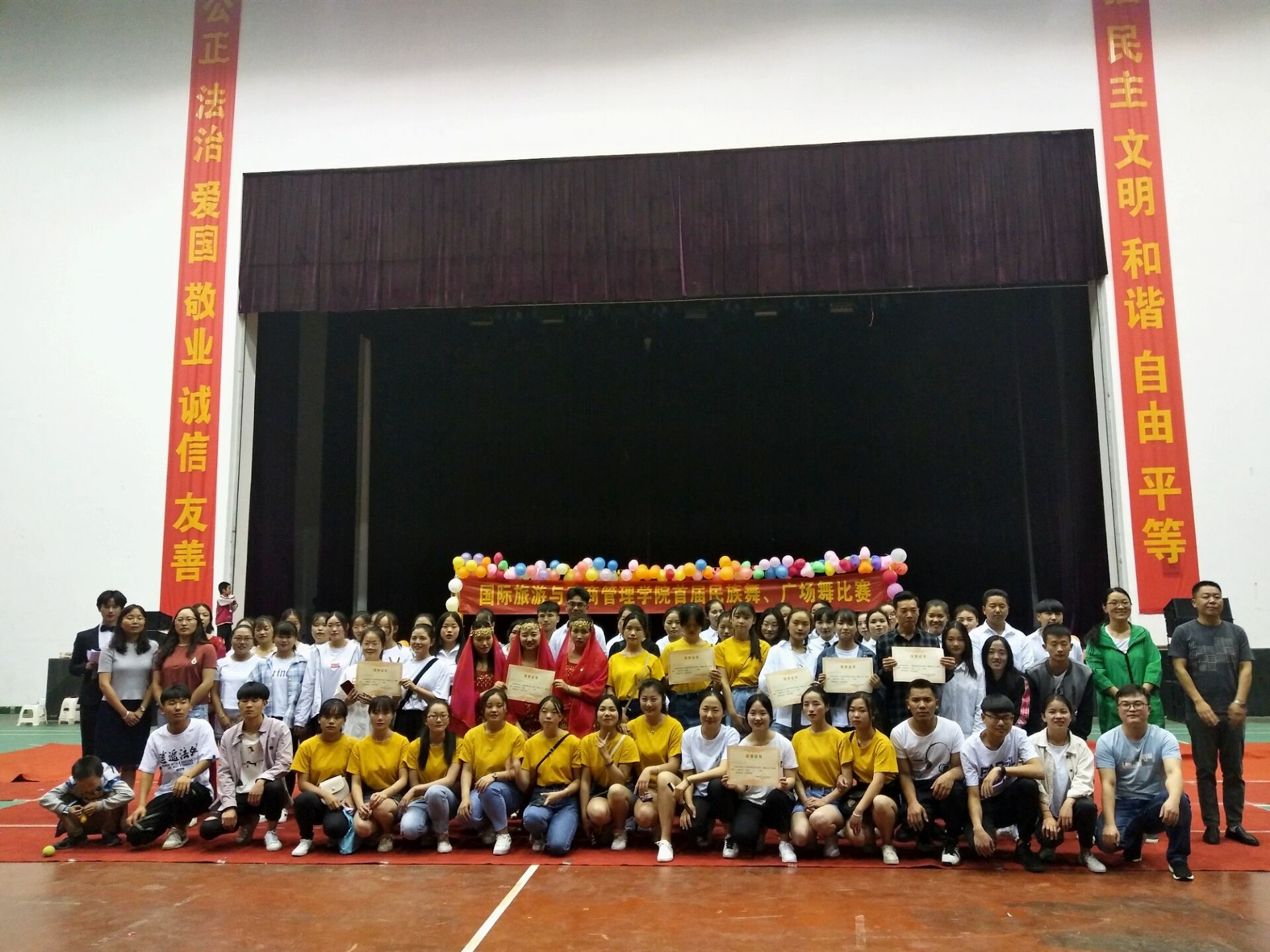 为进一步丰富大学校园文化生活,着力促进大学生健康成长,切实把立德树人和大学生思想政治教育工作抓好落实。2019年5月17日晚,国际旅游与工商管理学院首届民族舞、广场舞大赛在学校体育馆举行。学院院长杨小明、党总支书记沈紫拉、党总支副书记朱道平及全体辅导员、班主任和学院在校学生1000余人参加了此次活动。