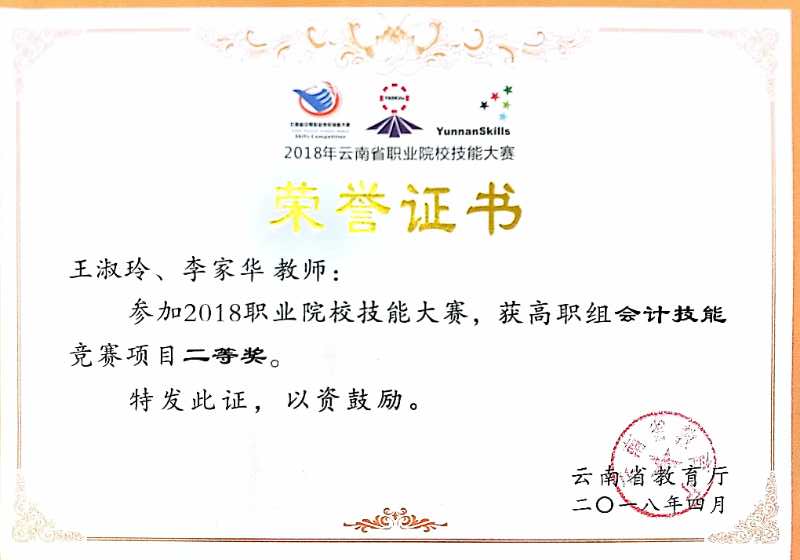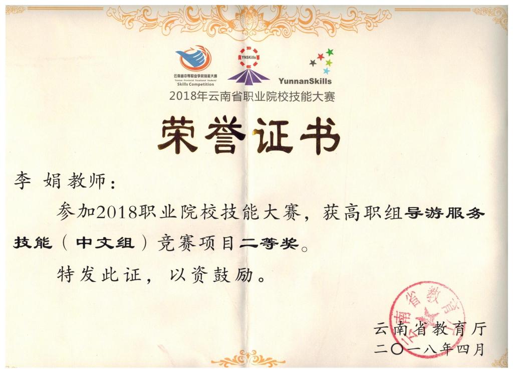 为推动、打造中国职业教育品牌,由云南省教育厅和昆明市政府主办的2018年云南省职业院校技能大赛近日在昆明开赛。国际旅游与工商管理系学院师生积极参加了本次技能大赛,其中,李娟老师荣获高职组导游服务技能(中文组)竞赛项目二等奖,李家华、王淑玲老师荣获高职组会计技能竞赛项目二等奖,普荣老师荣获高职组现代物流作业方案设计与实施竞赛项目三等奖,赵芳同学荣获高职组导游服务技能(中文组)竞赛项目二等奖,余思瑞、马蓉、骆娟、刘付婷同学荣获高职组会计技能竞赛项目二等奖,王吉、胡瑞、黄昌铭、庄昕妍同学荣获高职组会计技能竞赛项目二等奖,邹托、刘瑞、杨琼慧、李明明同学荣获高职组现代物流作业方案设计与实施竞赛项目三等奖,取得了丰硕的成果。其中李娟老师与其指导的2016级旅游管理班的赵芳同学将代表云南省参加国家级的比赛。