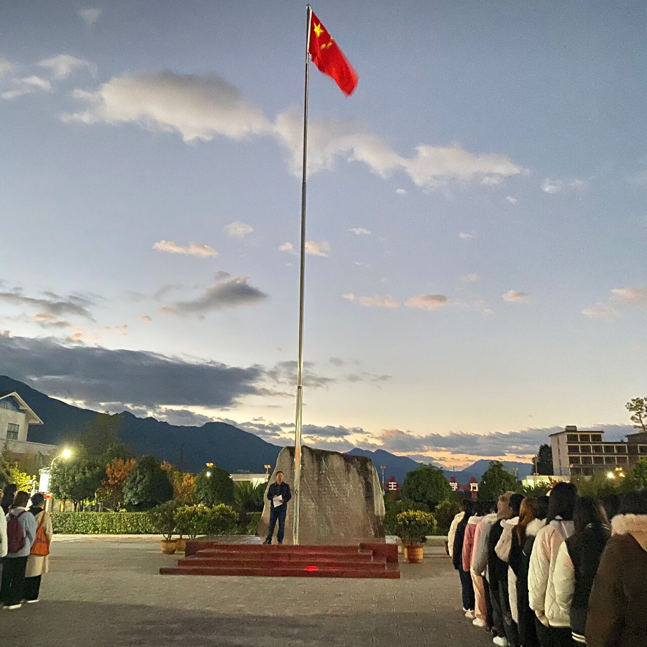 据悉,丽江师范高等专科学校深入学习习近平新时代中国特色社会主义思想和十九届六中全会精神,注重加强师生爱国主义教育等思想政治教育,以学习杰出校友张桂梅精神为契机,大力弘扬学习党史、新中国史、改革开放史、社会主义发展史、民族团结进步教育,不断培根铸魂,落实立德树人根本任务,为党育人、为国育才。旅游与经济管理学院此次组织师生举行升旗仪式,是落实育人的重要举措,不仅增强了广大师生的爱国主义精神,更磨炼了同学们顽强的心志和不畏寒冷的精神。