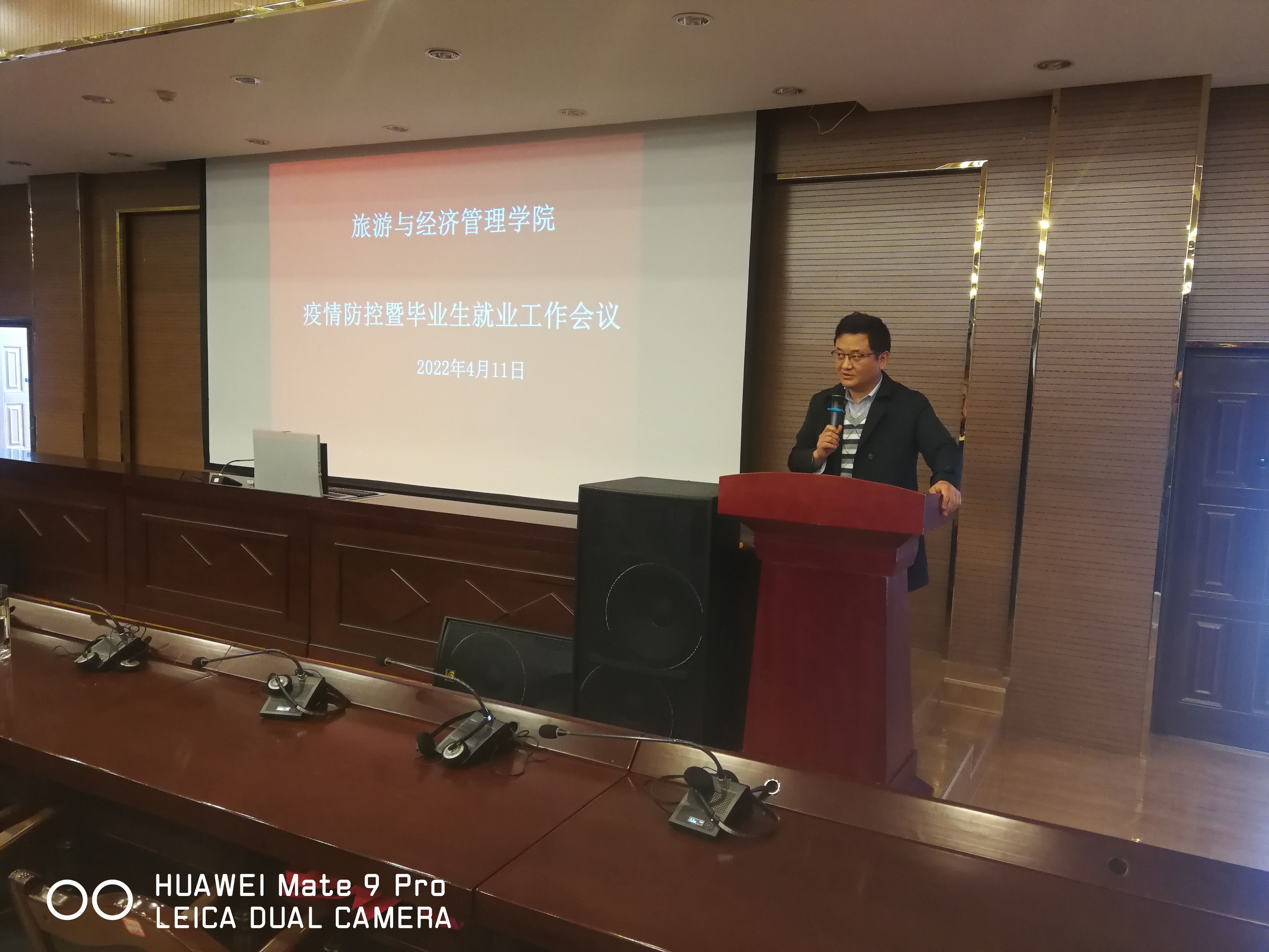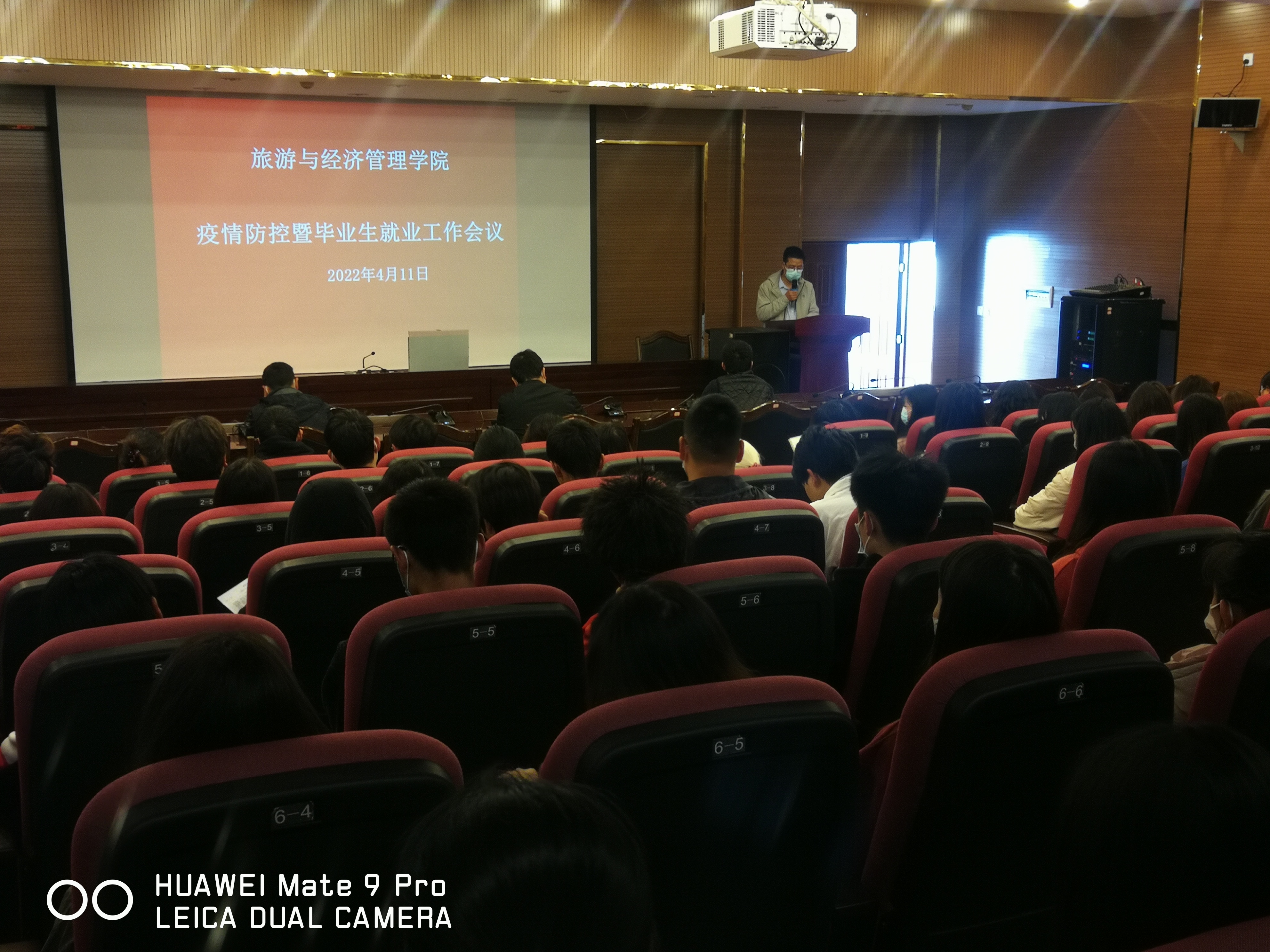 2022年4月11日上午,旅游与经济管理学院在实训楼318组织召开疫情防控暨毕业生就业工作会议。院长和燕杰、副院长周富军、专职组织员李文炳、综合办公室主任张云欣、学生工作办公室主任李继红、2022届毕业班辅导员张寿香及2022届参加专升本考试全体毕业生参加会议,会议由党总支副书记朱道平主持。