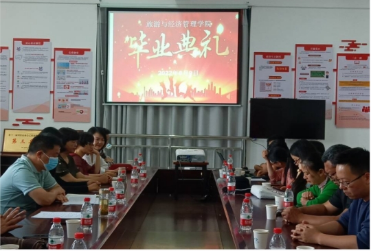2022年6月9日15:00,旅游与经济管理学院在实训楼615举行了2022届毕业生毕业典礼。学院党总支书记高烈明、专职组织员李文炳、毕业班班主任及辅导员、无课教师、全体返校毕业生、2020级各班学习委员参加本次毕业典礼,毕业典礼由学院党总支副书记朱道平主持。