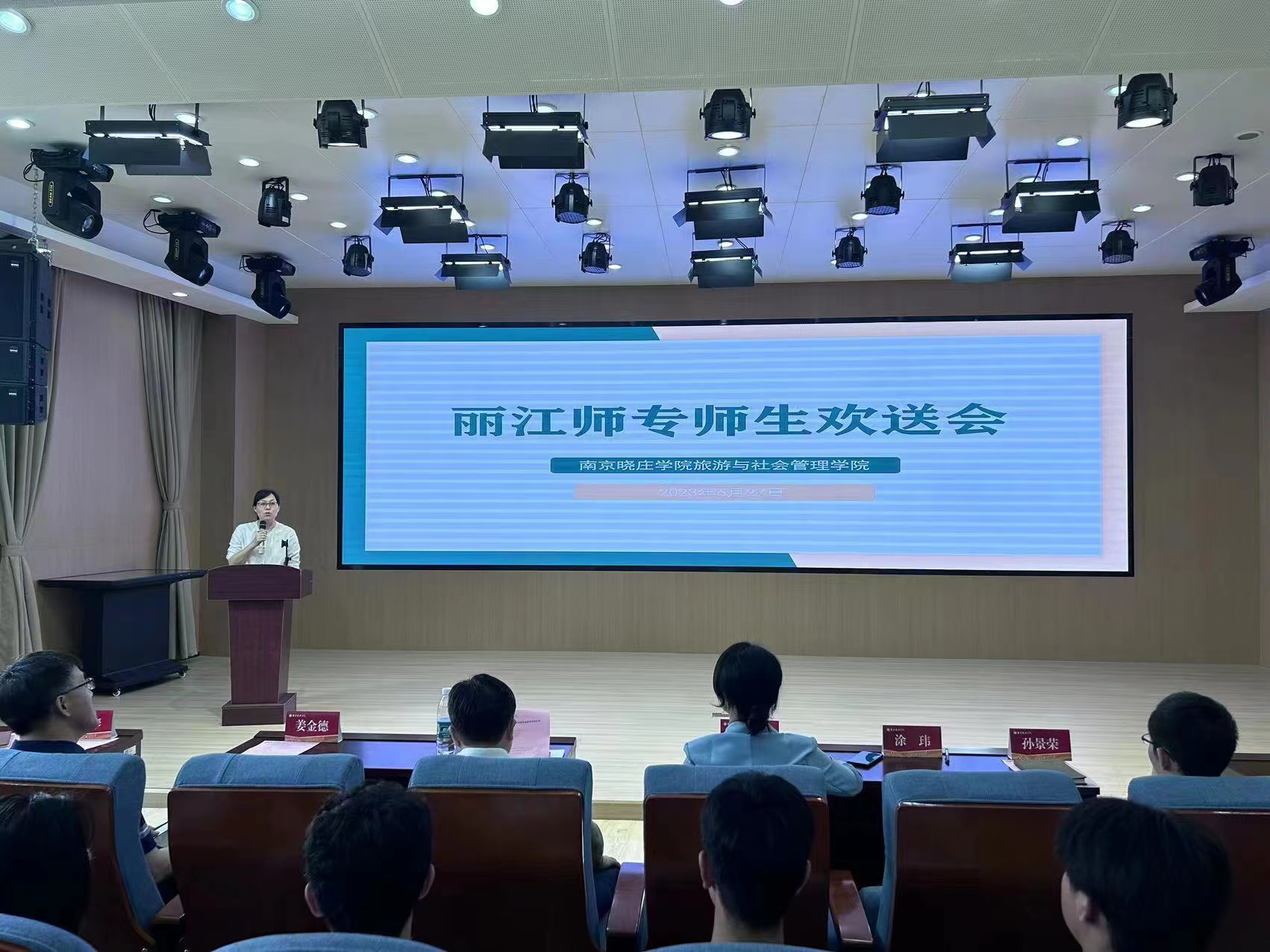 2023年6月27日,丽江师范高等专科学校师生欢送会在南京晓庄学校旅游与社会管理学院会议室举行,参加会议的有南京晓庄学院教务处副处长姜金德,旅游与社会管理学院院长李昌庚、副书记副院长孙景荣、副院长涂玮、部分教师和丽江师范高等专科学校13名交流师生。