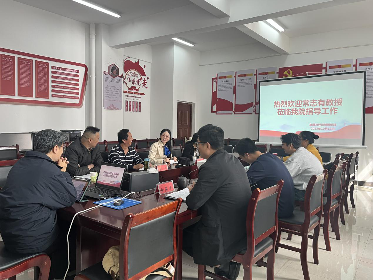近日,云南师范大学经济与管理学院副院长常志有教授应邀到旅游与经济管理学院进行学科专业提质、师资队伍建设、学院管理等指导工作。2023年10月18日下午14:30,旅游与经济管理学院学科专业建设座谈会在求是楼220会议室召开,会议由和燕杰院长主持,教学副院长周富军,各教研室主任、各专业负责人参加了座谈会,常志有教授应邀进行了指导。
