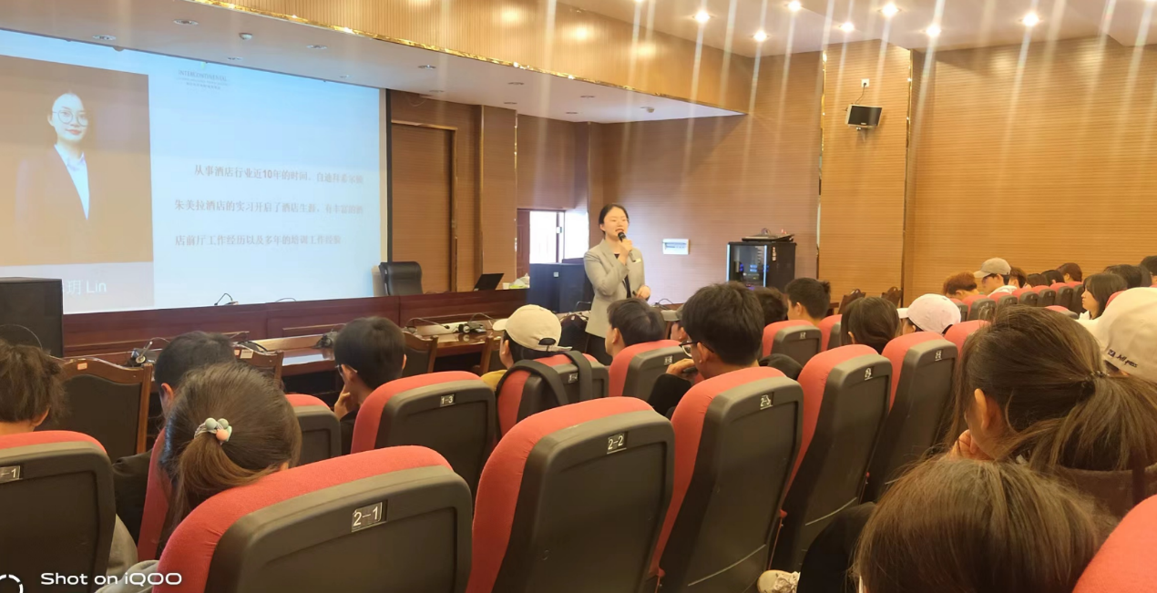 11月9日下午,受学院企业精英论坛邀请,丽江和府洲际酒店培训经理林玥为学院师生开展题为“问题处理模型--在企业实际工作中如何处理对客问题”的专题讲座,林经理向学院师生分享了自己近10年酒店工作经历及多年的培训工作经验。学院100余名师生在求是楼318报告厅参与聆听,本次讲座由学院和燕杰院长主持。