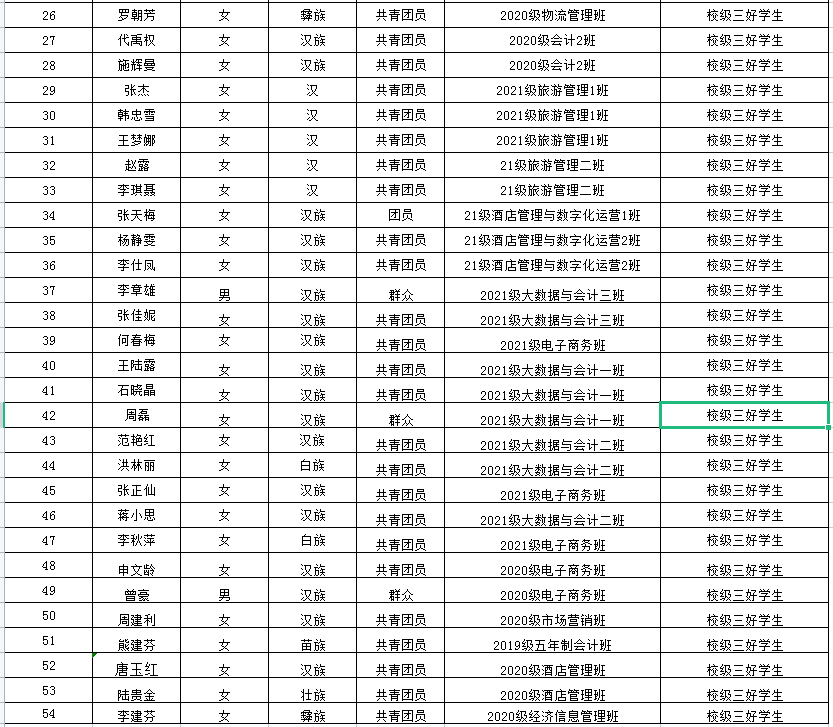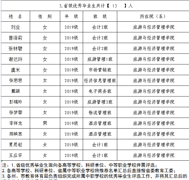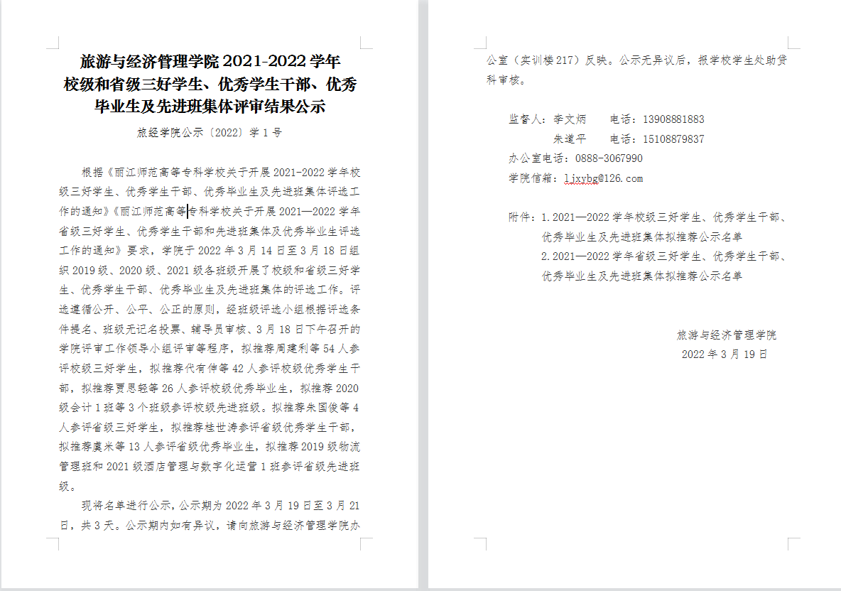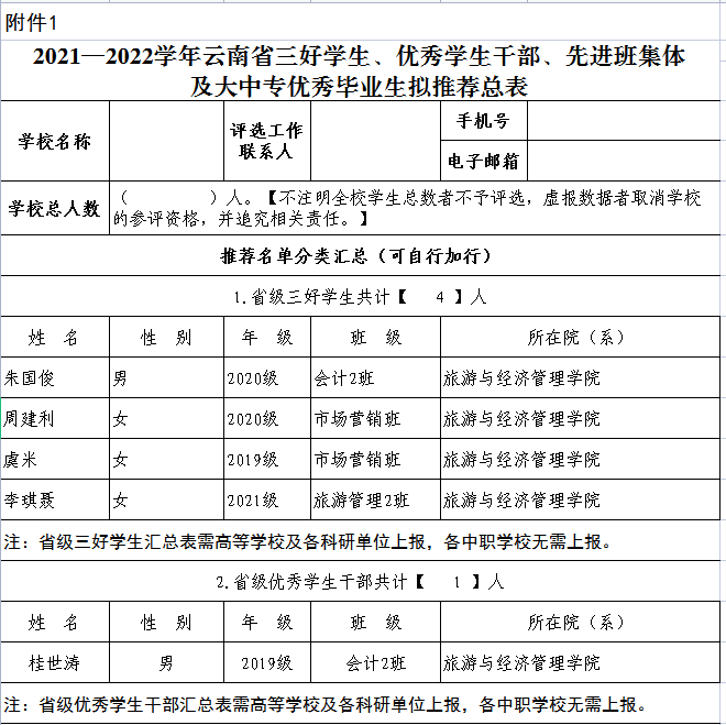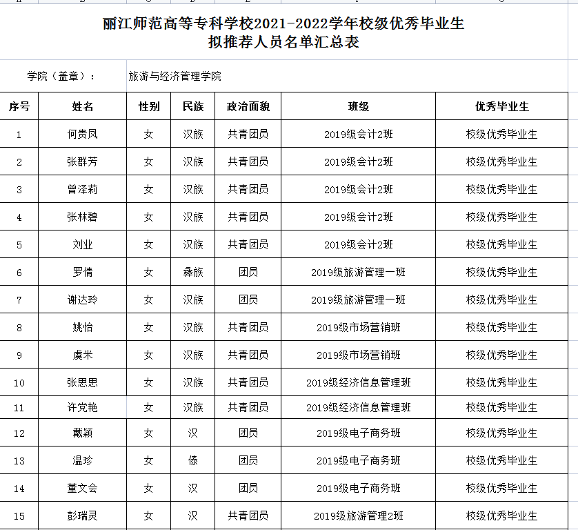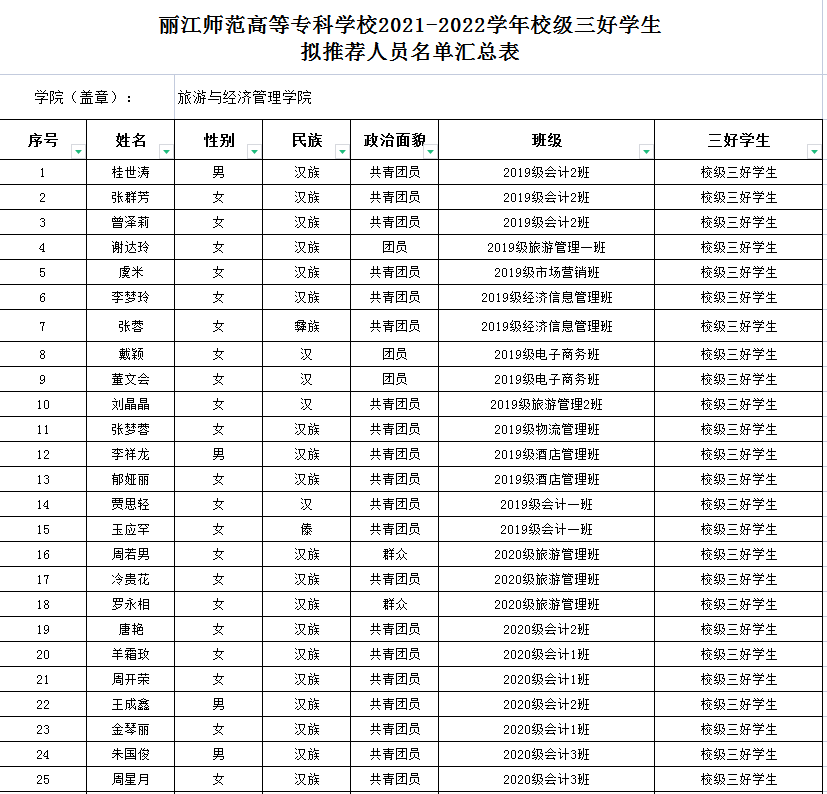 旅游与经济管理学院2021-2022省级、学校三好学生、优秀学生干部、优秀毕业生及先进集体评审结果公示