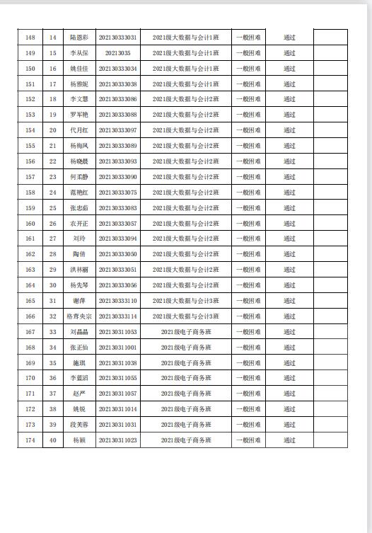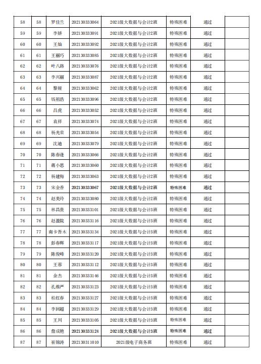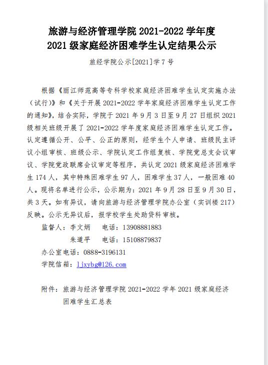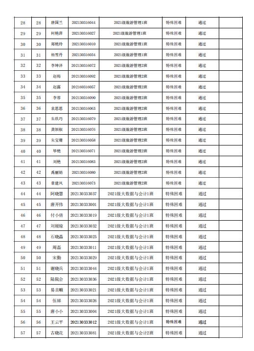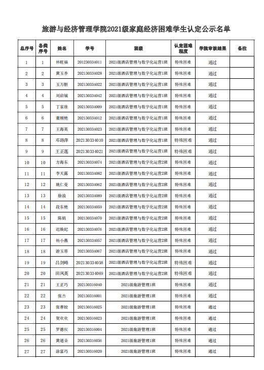 旅游与经济管理学院2021-2022学年家庭经济困难学生认定结果公示(第二批)