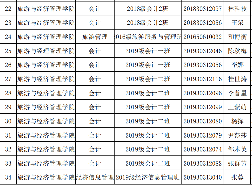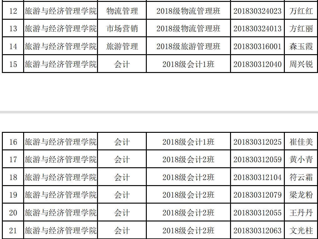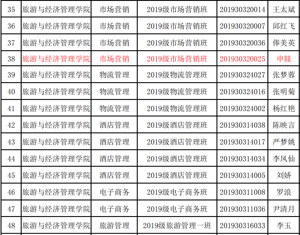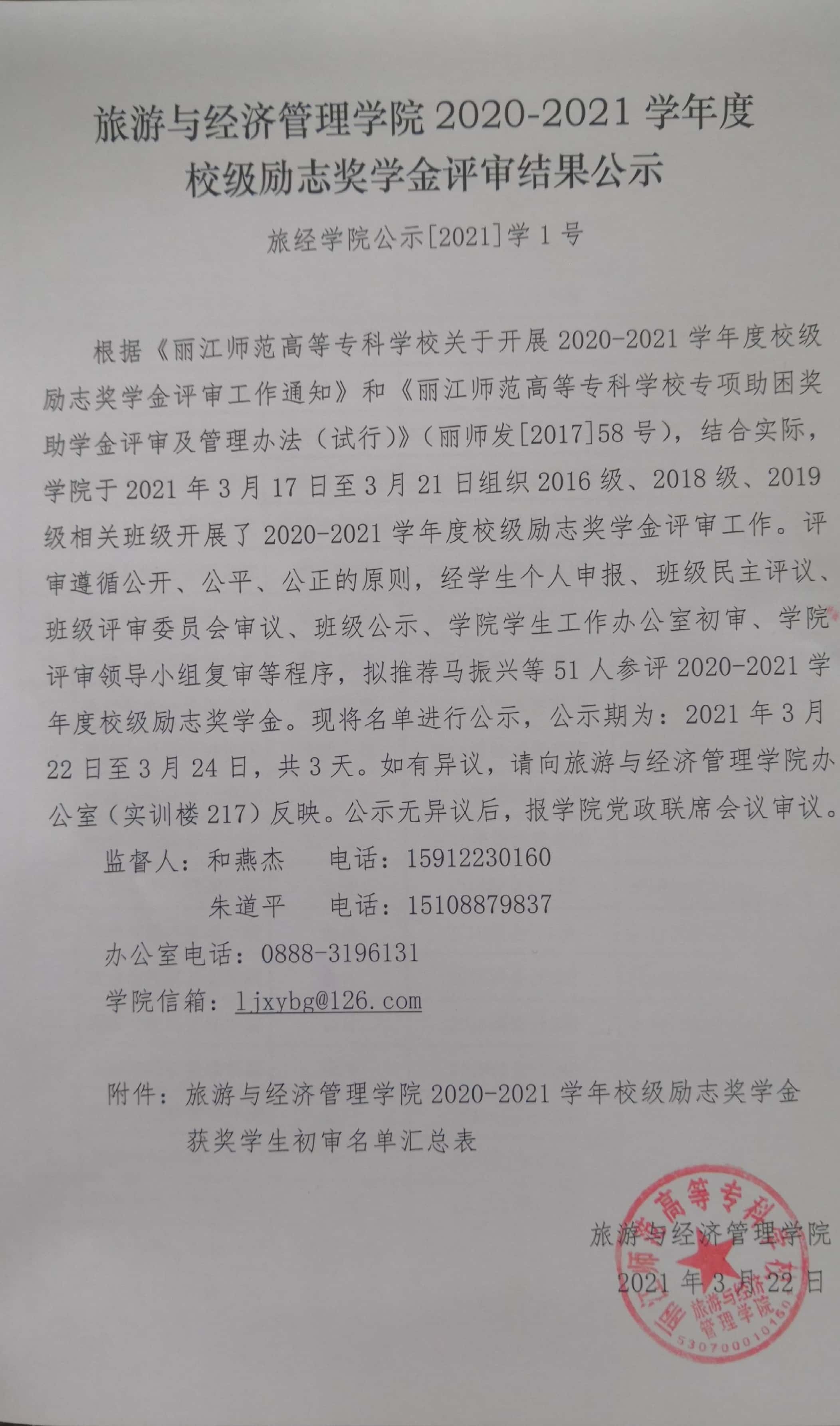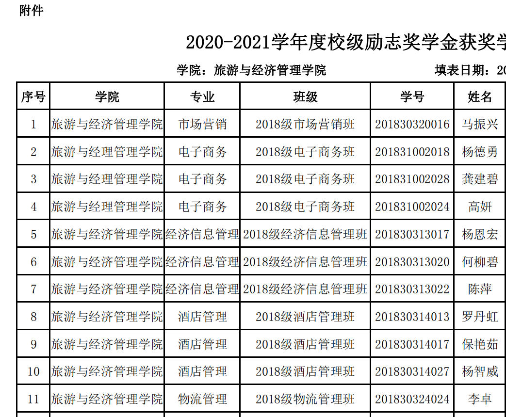 旅游与经济管理学院2020-2021学年度校级励志奖学金评选公示