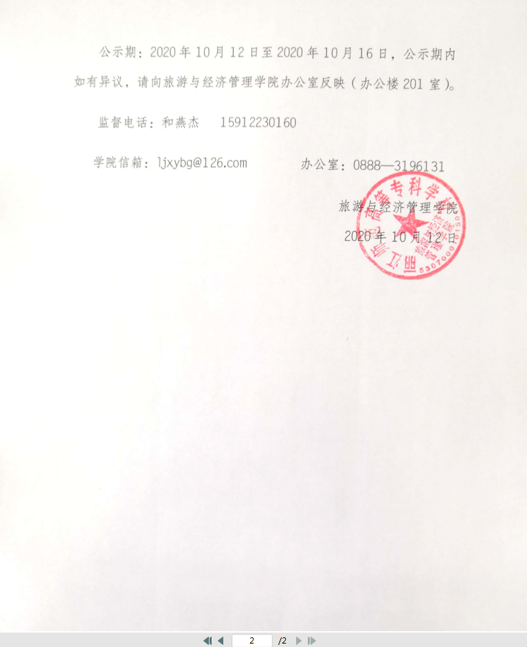 旅游与经济管理学院2020年秋季贫困生认定情况公示