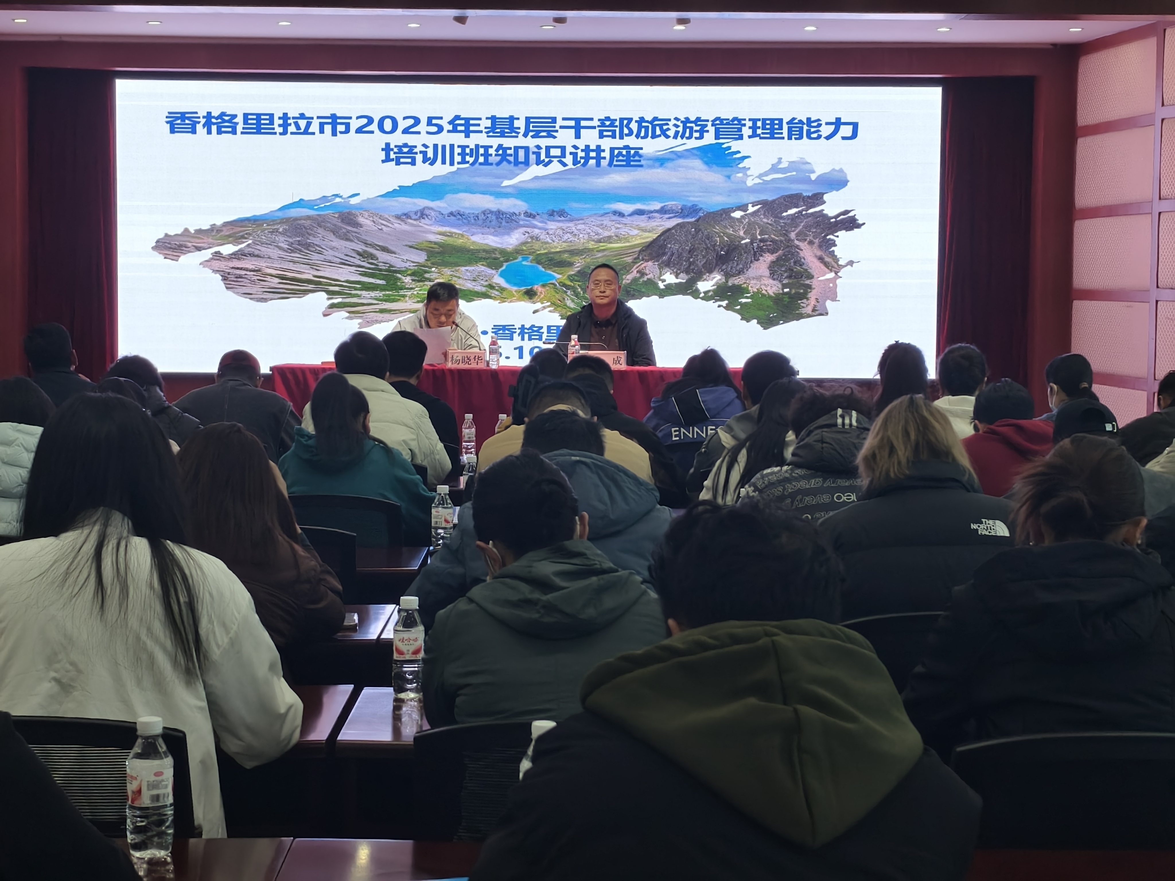 为配合香格里拉市推进旅游产业高质量发展工作,助力基层干部夯实旅游管理、服务及创新基础能力,2025年10月22日,香格里拉市文化和旅游局、香格里拉市旅游发展投资有限公司在该市建塘镇联合举办了“香格里拉市2025年基层干部旅游管理能力培训班知识讲座”。经学校批准,我院丽江旅游研究中心主任王成受邀担任主讲,为100名参训学员开展授课与经验交流。