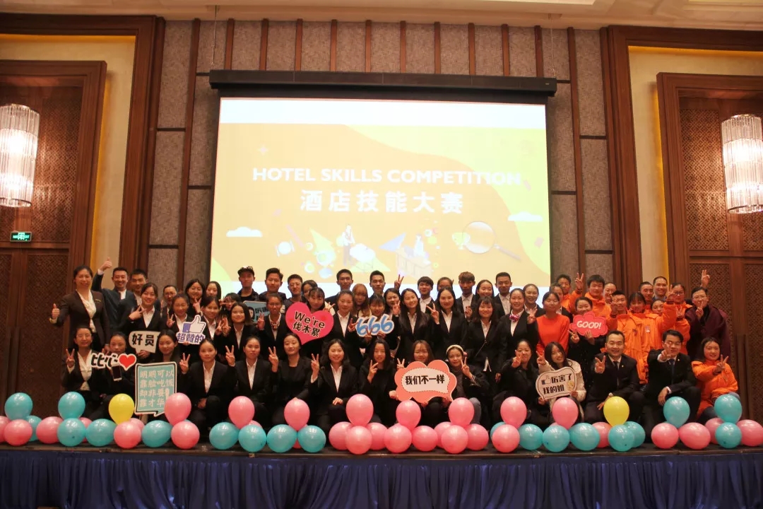 比赛结束后,酒店方请观摩的同学和酒店的员工进行技能互动,2017级酒店管理专业的同学们积极地展示了铺床和餐巾折花技能,得到酒店员工的指导和好评。