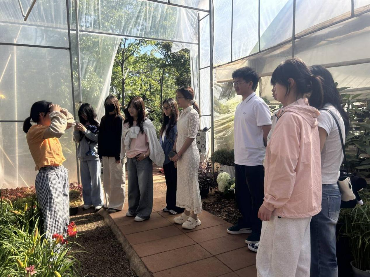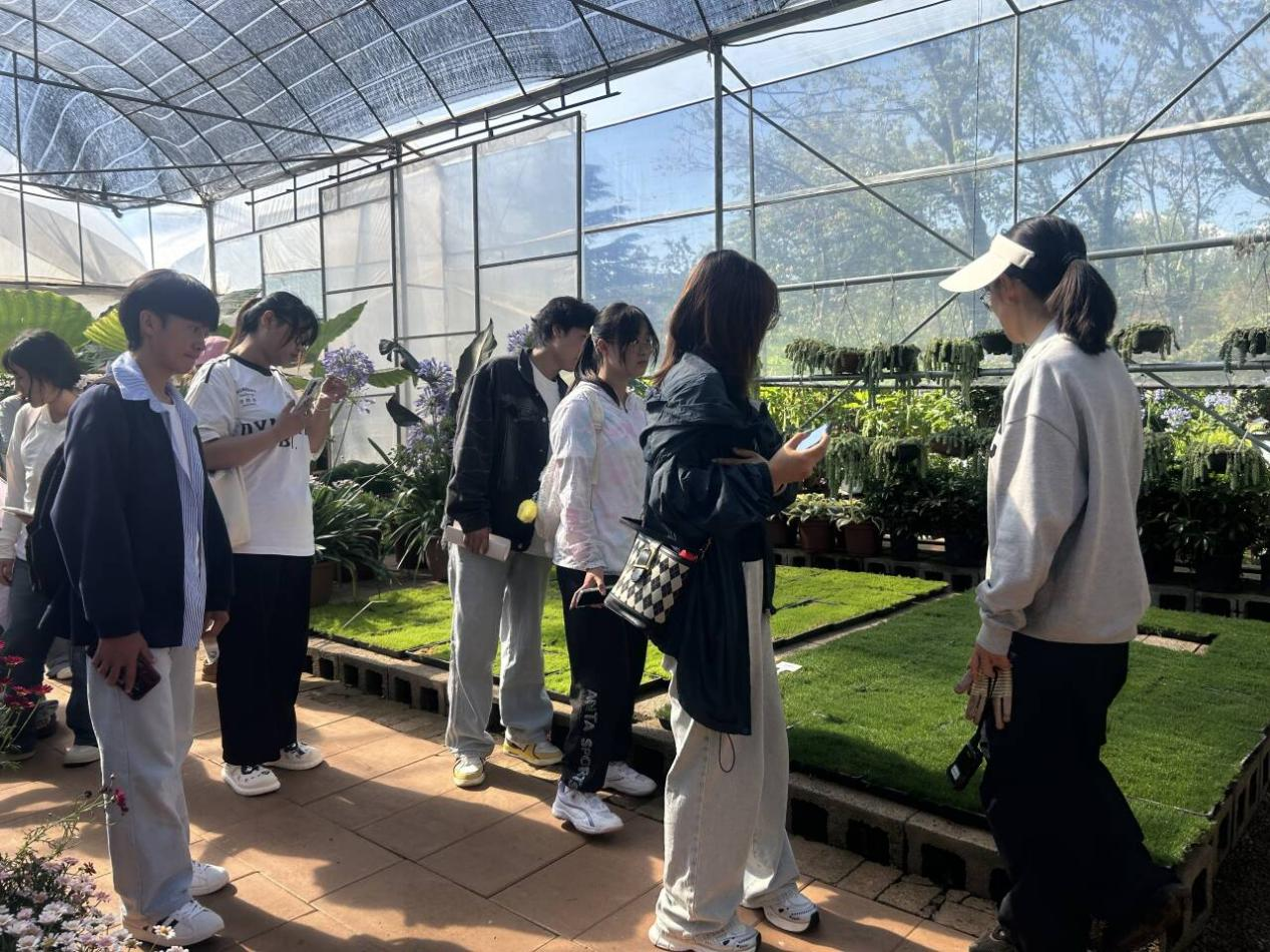 在丽江木悦花卉科技公司,学生们参观了花卉种植温室,不仅了解到从花卉种苗培育、种植管理到成品花卉销售的全流程,还特别关注到公司通过电商平台拓展销售渠道的成功经验。公司人员分享,在商品管理上,他们会精心拍摄花卉图片、撰写生动描述,并根据市场动态合理定价;促销活动策划也十分多样,如限时折扣、满减优惠等,通过电商平台的精准推广,吸引大量消费者。在玉龙县巨甸艳梅种植基地,丰富多样的花卉品种让学生们大开眼界。基地负责人分享了基地在花卉种植方面的特色经验,以及在乡村振兴背景下,花卉产业对当地经济发展的带动作用。介绍了借助电商打破地域限制,将特色花卉销售至全国各地的成果。学生们认真聆听,并就感兴趣的问题与公司技术人员展开交流。