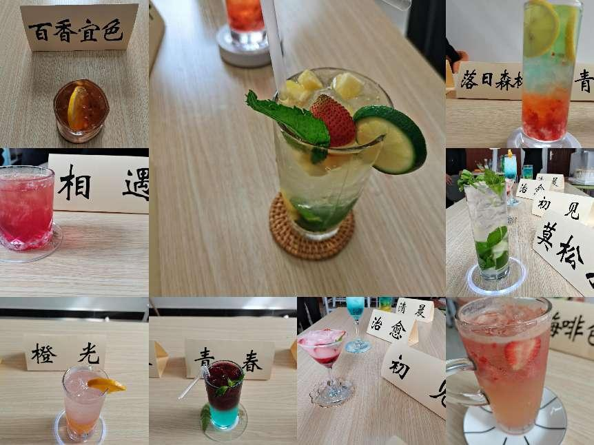 在自创鸡尾酒环节,充分体现出同学们丰富的想象力、超凡的创新能力,每一款鸡尾酒的名称、寓意和使用的原料相得益彰、独具匠心,鸡尾酒不仅在外形上吸引眼球,而且在味道上也得到了大众品鉴团的一致好评,真正做到了色香味形俱佳。