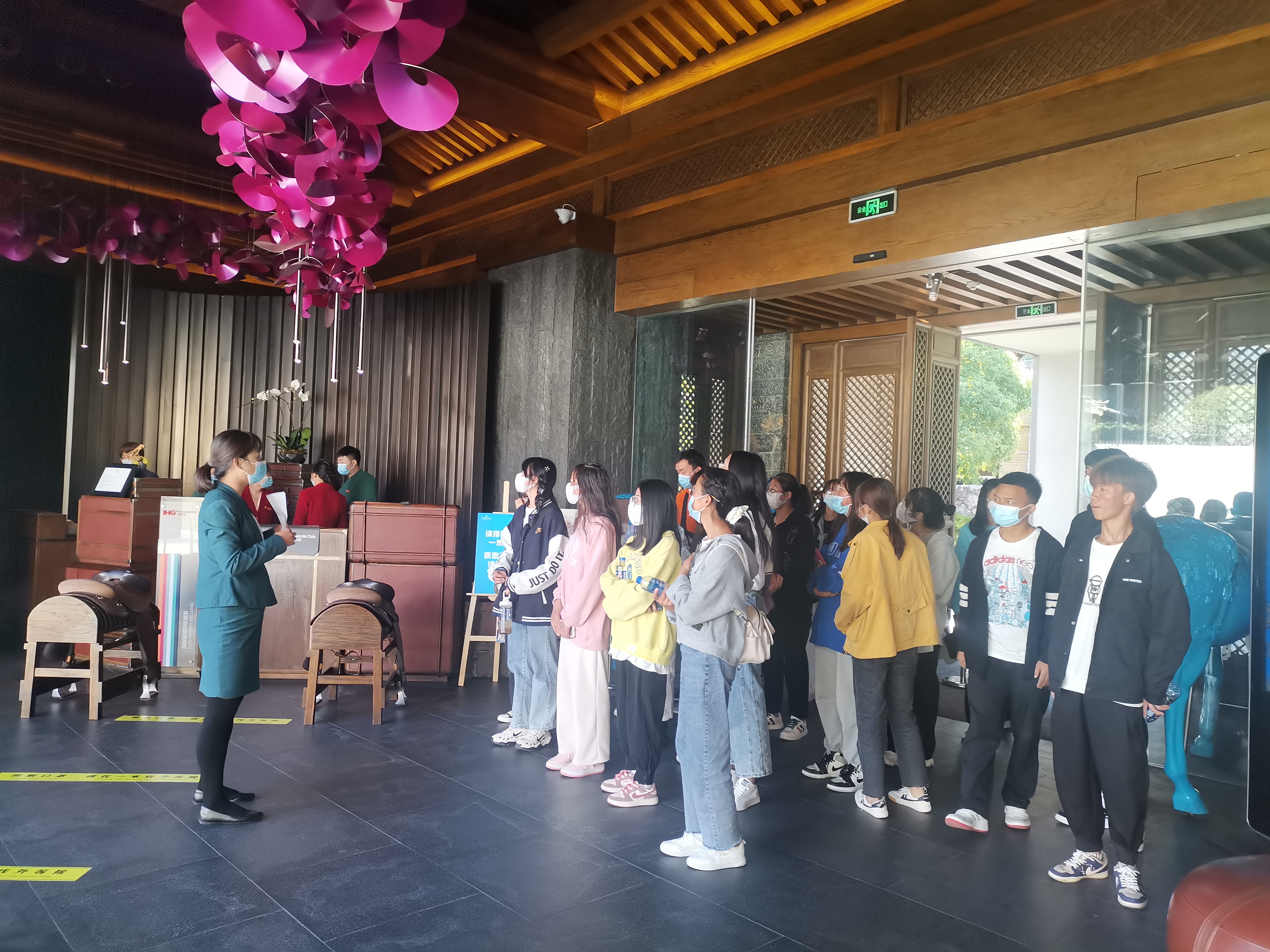 丽江和府洲际度假酒店人力资源部的工作人员热情地接待了旅游类专业的新生。首先,招聘经理苏珊珊带领同学们从员工通道进入酒店员工办公区域,参观了酒店的采购部、文化墙、办公室、员工餐厅等,让同学们对酒店的办公环境有了最直观的了解。接下来,酒店人力资源部的工作人员通过讲解和视频播放的形式为同学们介绍了洲际集团的发展历史、旗下品牌、服务理念、实习生待遇等,在讲解的过程中还安排了有奖问答的环节,同学们积极参与其中。最后,学生们被分为三组,在三位工作人员的带领下参观丽江和府洲际度假酒店和英迪格酒店的待客区域,相关区域的负责人进行详细讲解。