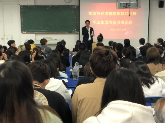 为推进2022届毕业生顶岗实习的相关工作,促进校企合作进一步发展,2021年6月11日13:00旅游与经济管理学院在教学楼222举行2022届2019级实习生进行实习宣讲会。丽江和府洲际度假酒店、丽江玉龙雪山国家级风景名胜区门票管理中心、丽江金茂君悦酒店、丽江茶马古城旅游发展有限公司等10余家合作单位应邀参加。旅游与经济管理学院副院长周富军、辅导员张寿香、实习工作负责人张云欣以及部分相关教师参加了此次宣讲会。 |