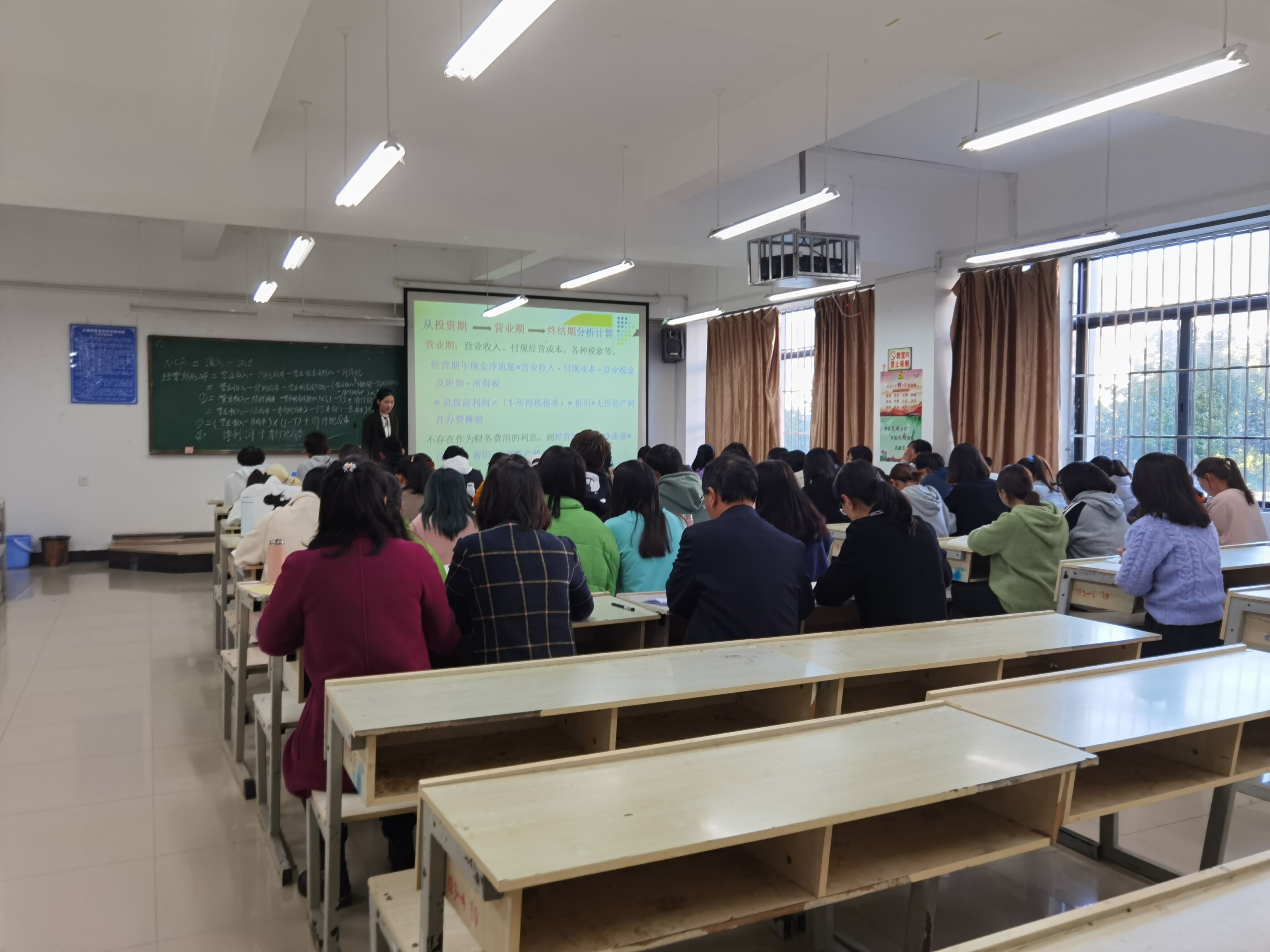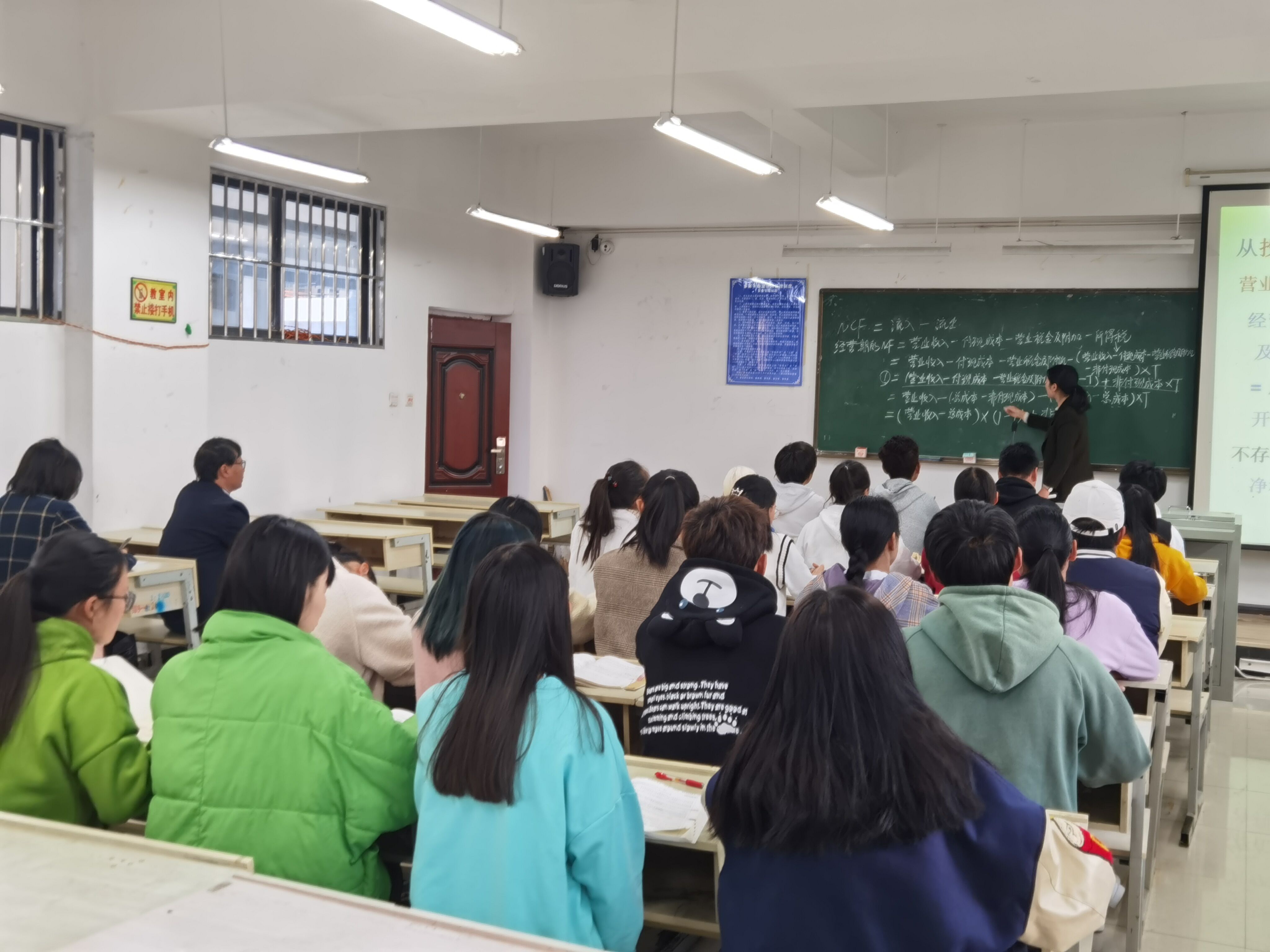 2020年11月17日上午第二节课旅游与经济管理学院院长杨小明及会计教研室李家华、杨静海、杨海燕、吴绍芹等几位老师集体听了毛幸跃老师的一堂《财务管理》课。