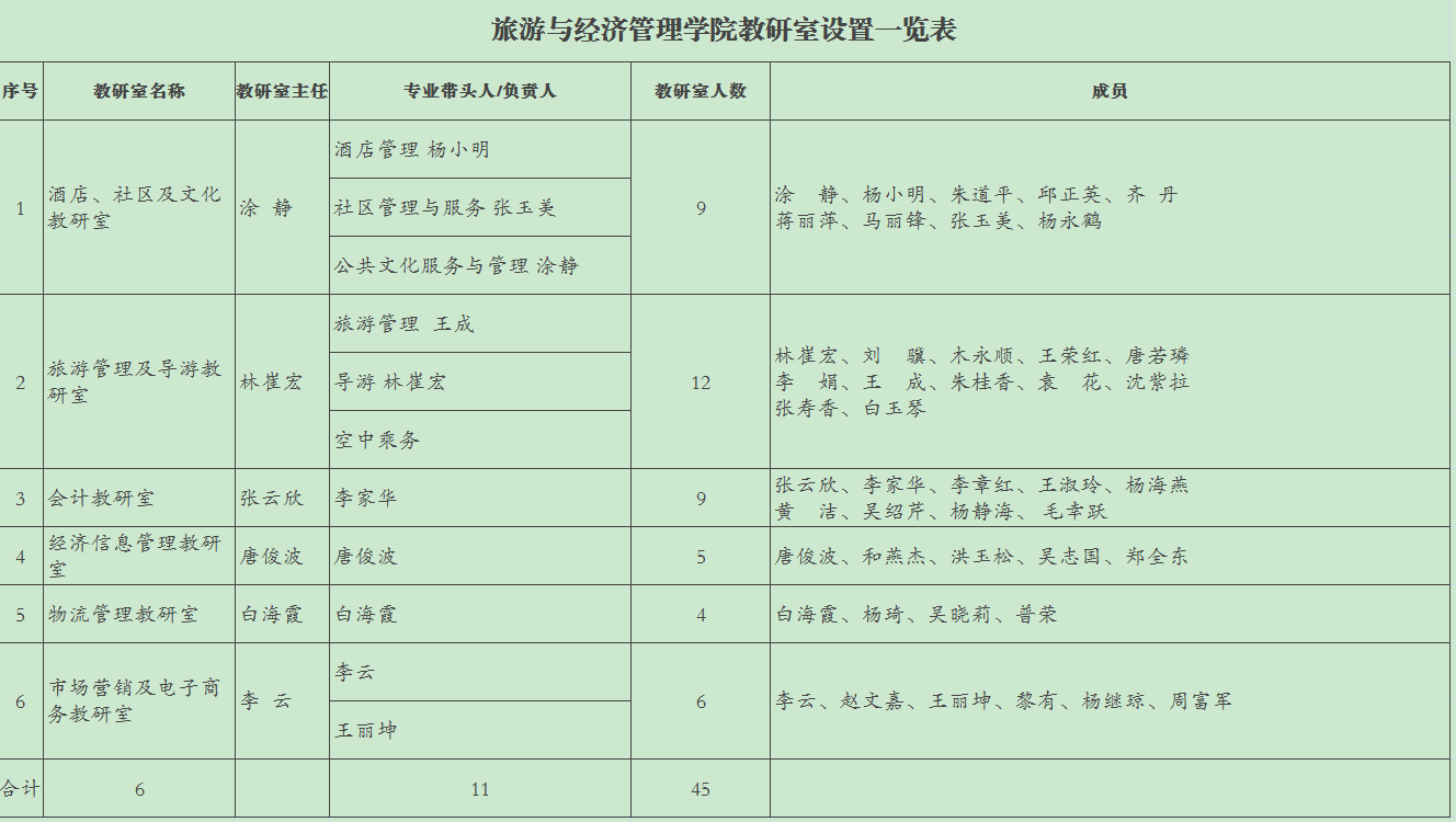 旅游与经济管理学院专业教研室设置情况一览表