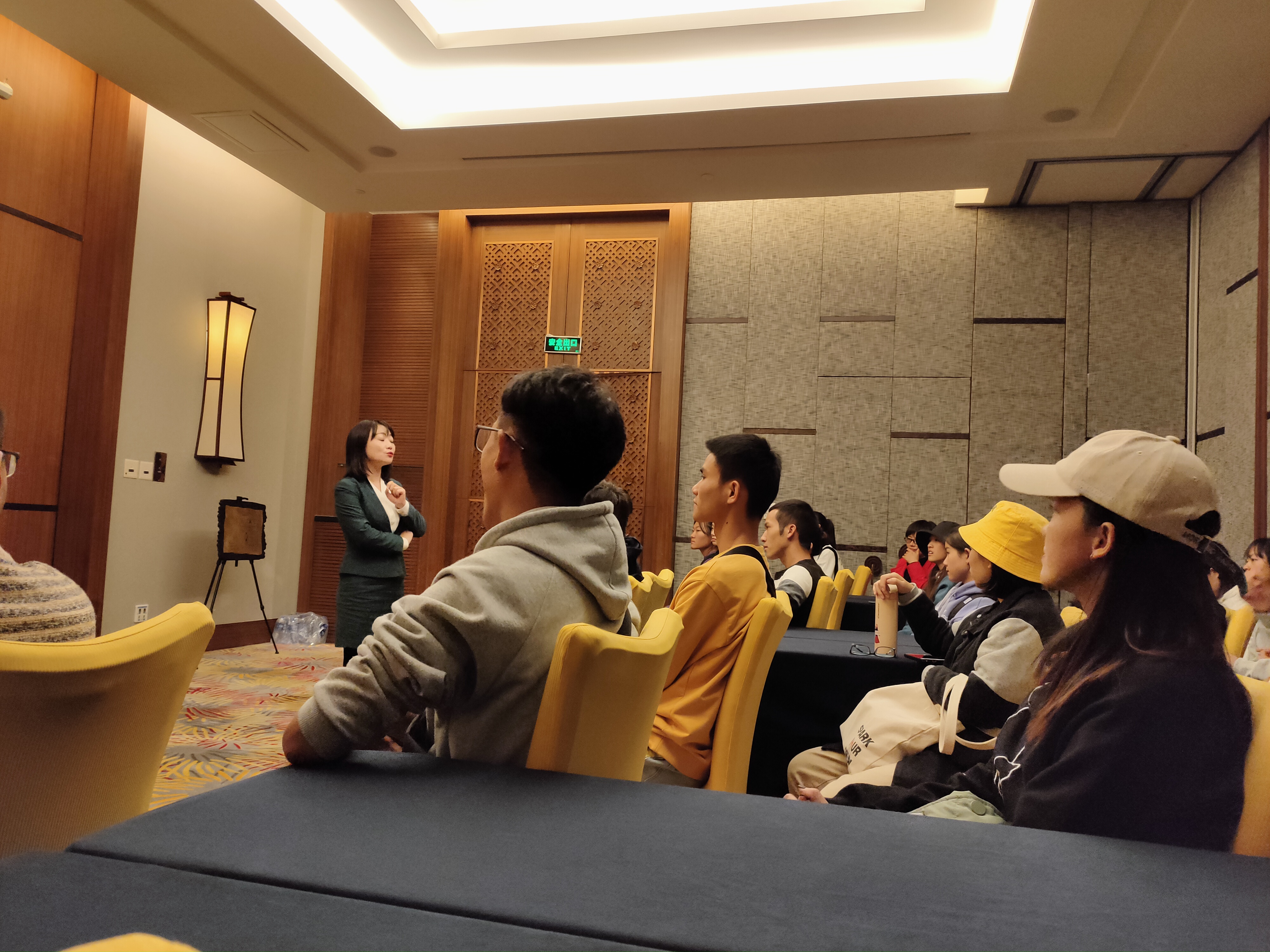 到达酒店后,我们分成两个小组,分别由酒店的工作人员带我们参观学习。酒店的工作人员为我们介绍了丽江和府洲际度假酒店的情况。带领我们去参观了客房、餐厅、大堂等功能区,还介绍了丽江和府洲际度假酒店在建筑中采用的纳西特色元素。期间我们会向工作人员提问,酒店工作人员也会一一为我们解答。在离开酒店之前,同学们和酒店工作人员一起聚在会议室交流学习。